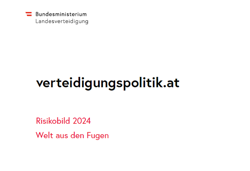 Das Direktorat für Verteidigungspolitik und internationale Beziehungen des Bundesministeriums für Verteidigung lud zur Präsentation der Publikation "Risikobild 2024 - Welt in Aufruhr" ein. Das Risikobild identifiziert und bewertet Herausforderungen auf globaler Ebene sowie für die EU und Österreich. Jedes Jahr werden die Schlüsselpunkte des Risikobildes präsentiert, um über die Sicherheitssituation zu informieren. Spannende Lektüre für Interessierte an der aktuellen Sicherheitssituation Österreichs. Hier können Sie das Risikobild 2024 kostenlos herunterladen: https://verteidigungspolitik.at/artikel-risikobild-2024#:~:text=Risikobild%202024%20(-,PDF,-)%0A%0A%E2%80%8B%E2%80%8B%E2%80%8B%E2%80%8B%E2%80%8B%E2%80%8B%E2%80%8BRisk%20Monitor.