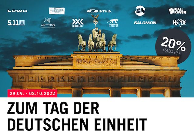 Noch bis Sonntag, 02.10.2022 erhaltet Ihr stimmungsgeladene 20% Rabatt* auf nahezu alle lagernden Artikel folgender Hersteller: Tasmanian Tiger, Salomon, Carinthia, Haix, Arc’teryx LEAF, X-Bionic, 5.11 Tactical, LOWA, Leo Köhler, Fjällräven und Hanwag.