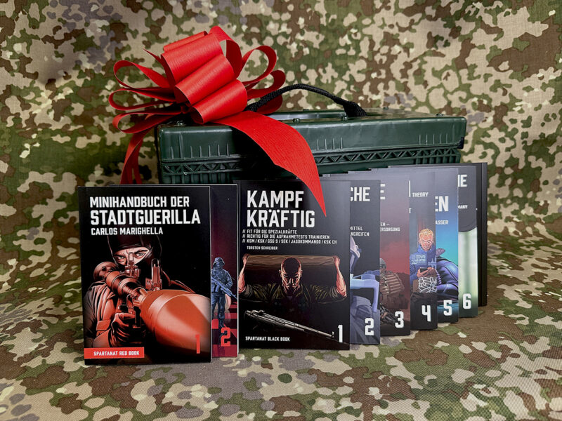 Holen Sie sich das ultimative Buchpaket von SPARTANAT und überraschen Sie Ihre Liebsten zu Weihnachten. Enthalten sind alle SPARTANAT Black Books, alle SPARTANAT Red Books und eine praktische Munitionskiste. Sparen Sie über 30 Euro beim Kauf des gesamten Pakets. Machen Sie mit dem Kauf auch bei einer Verlosung mit und gewinnen Sie das X-MAS Bundle von TASMANIAN TIGER. Das Angebot endet am 14. Dezember - greifen Sie jetzt zu! Besuchen Sie den SPARTANAT SHOP online für weitere Informationen.