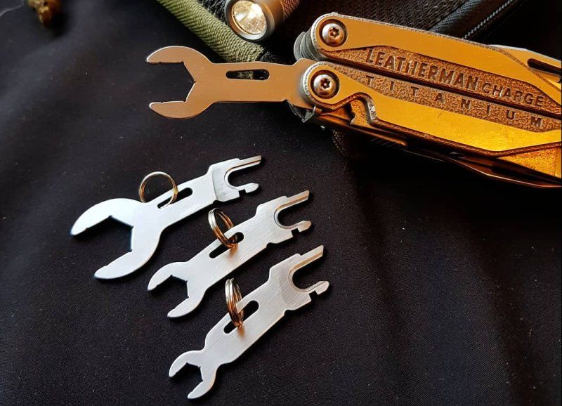 Die Firma Graf Knives aus Polen hat kleine Schraubenschlüssel hergestellt, die an das Leatherman angebracht werden können. Kompatibel mit allen Leathermans, in die ein Taschenclip eingefügt werden kann, wie Charge, Surge und Wave.