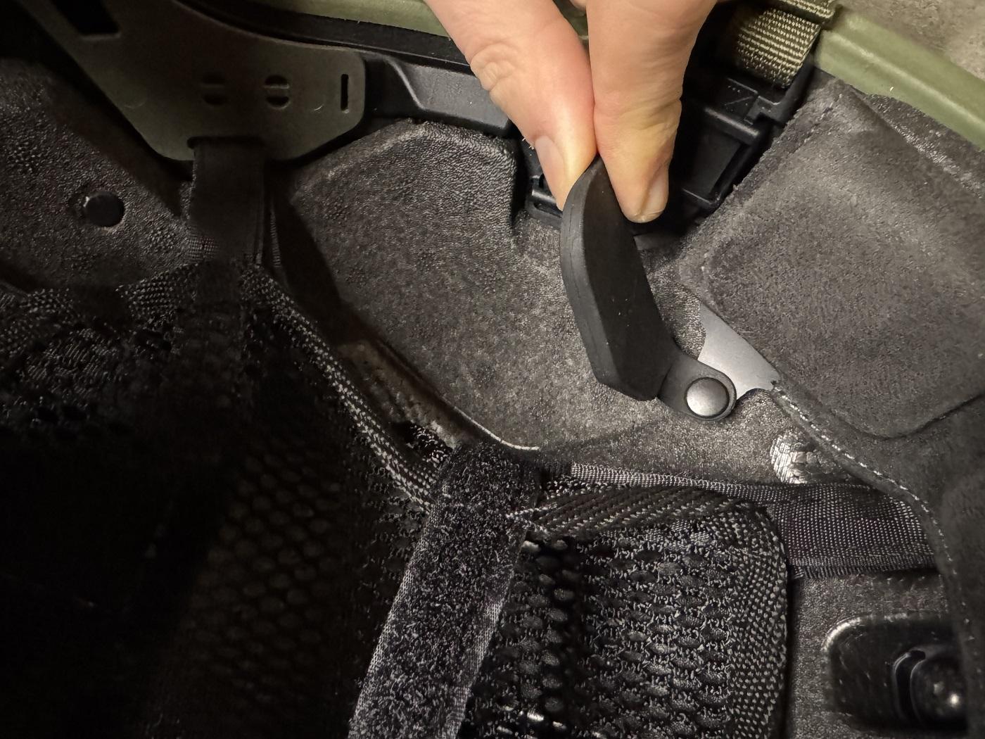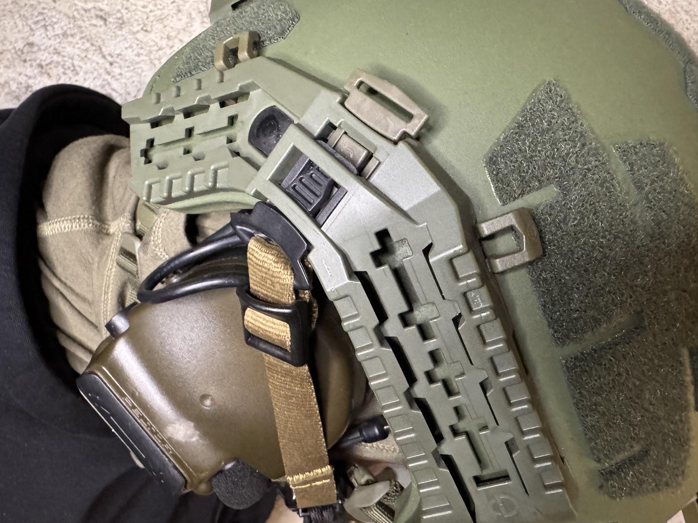 Ein Vorteil, im Gegensatz zu Lösungen, bei denen die Gehörschutzkapseln außen am Helm befestigt werden. Auch steht einem so viel mehr Platz auf der Seitenschiene zur Verfügung.