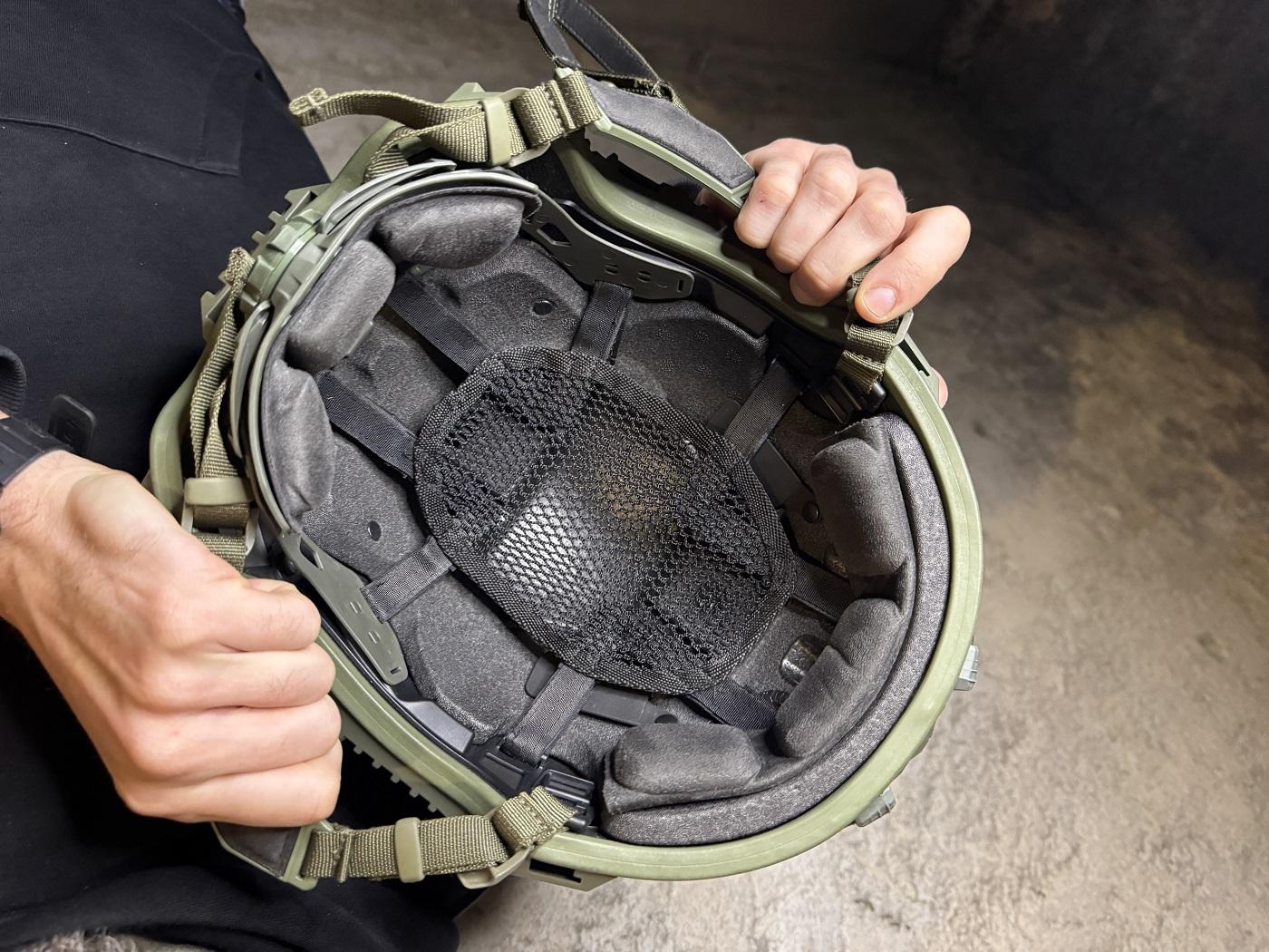 Die Helmschale besteht aus einem Aramid-Verbundwerkstoff und stellt eine solide Basis dar. Die aktuelle Version bietet bereits den hohen Splitterschutz eines HPPE-Helms, ohne dessen Nachteile wie reduzierten Traumaschutz und Temperaturempfindlichkeit, geringe Lebensdauer sowie hohe Kosten und aufwändige Reparaturen. Zusätzlich verfügt der M100 über vollballistische Schrauben und ermöglicht somit die Integration eines Schienensystems. „Vollballistisch“ ist bei Schrauben am Helm übrigens wichtig; das heißt, dass bei einem Treffer auf die Schraube, das Innenteil nicht zum erweiterten Geschoss wird.