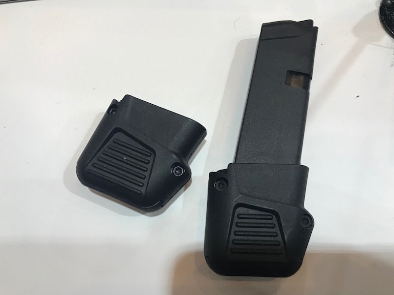 Da ist die ganze Waffe mit verlängertem Magazin. Der Preis ist natürlich, dass das Griffstück nun deutlich länger ist. Für Menschen, die das und den Mehrwert an 4 Schuss Munition haben wollen, handelt es sich um eine sinnvolle Lösung. HIER gibt es die FAB Glock 43 Magazinverlängerung +4.