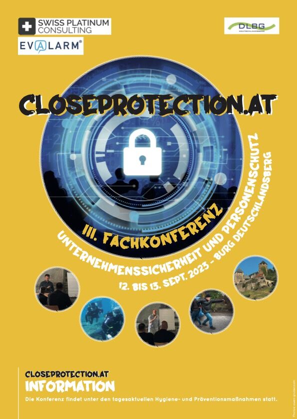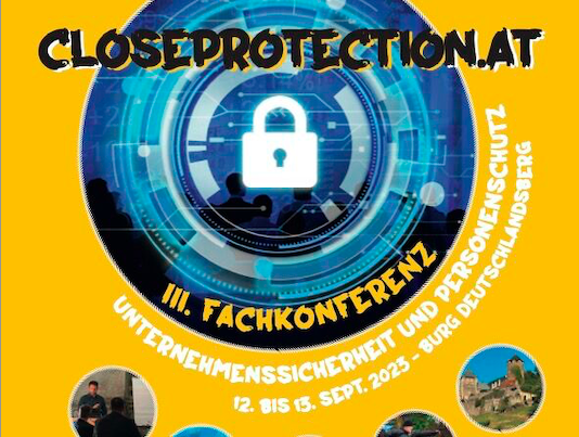 Die dritte Fachkonferenz "Personenschutz und Unternehmenssicherheit" findet am 12. und 13. September 2023 auf Schloss Deutschlandsberg in Österreich statt. Behandelt werden Themen wie "Digitale Alarm- und Notfallmanagement", "Cyberangriffe", "Erste Hilfe bei Stich- und Schussverletzungen" und mehr. Anmeldung bis 28. Juli 2023 unter closeprotection.at. Begrenzte Teilnehmerzahl!