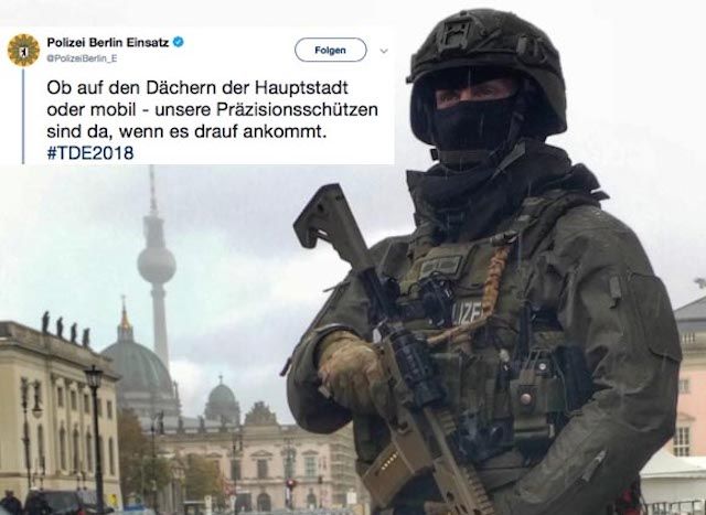 Das Gesicht der Polizei hat sich verändert. Mit modernen Zeiten braucht es auch eine moderne Polizei, die auf Gewaltkriminalität und Terrorismus als Bedrohungen vorbereitet ist. Die Berliner Polizei, die dieses Bild getwittert hat, um ihre Kollegen zu zeigen, die täglich für die Sicherheit in der deutschen Hauptstadt, arbeiten, hat erst unlängst neue „Mitteldistanzwaffen“ bestellt – wir haben über die Beschaffungen berichtet. Am Twitter-Bild der Hauptstadt-Polizei ist die Waffe der Wahl jetzt in Berlin im Einsatz zu sehen: die MCX von SIG SAUER. HIER gibt es alle technischen Infos zur MCX.