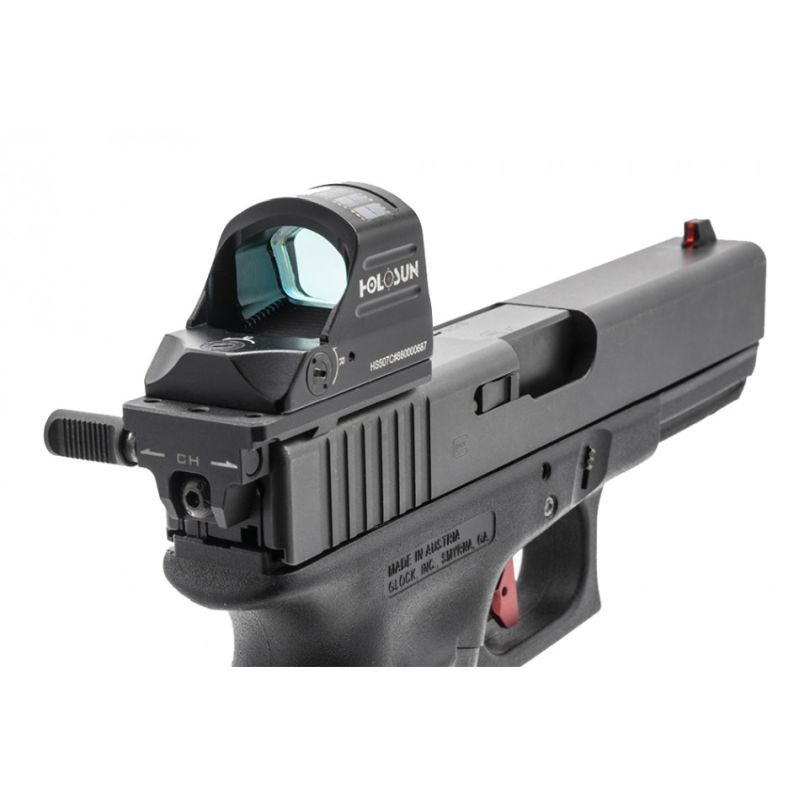 Die Plattform bietet Montagepunkte, ganz ohne Modifizierung des Schlittens. Die Plattform passt für die Optiken diverser Hersteller, unter anderem Holosun, Leupold, Docter, Trijicon uvm.