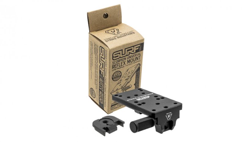 Das Scorpion Universal Reflex Mount für die Glock (G-SURF) von Strike Industries ist ein recht simples Upgrade, um Rotpunkt Optiken zu montieren. Die Plattform bietet Montagepunkte, ganz ohne Modifizierung des Schlittens.