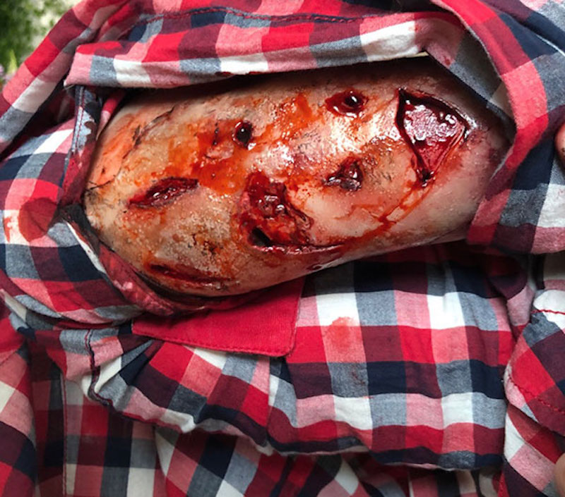 Explosionen können, je nach Intensivität, schlimme Verletzungen erzeugen. Hier eine Schrapnellverletzung.