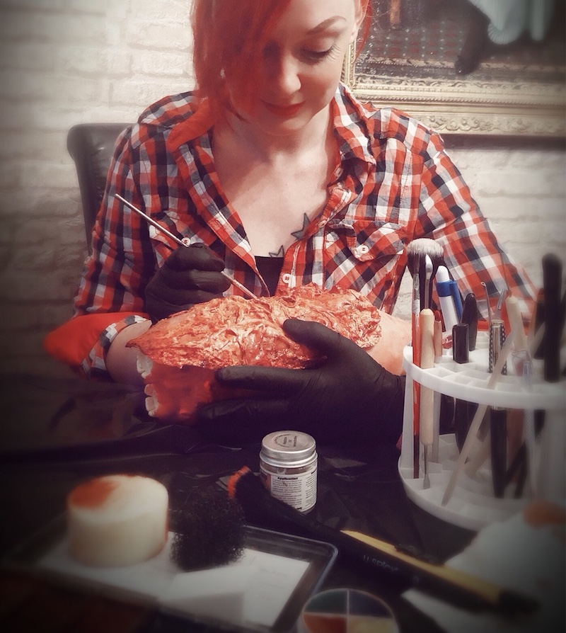 TB-Wunden arbeitet fast ausschließlich mit Silikonen um eine gute Haftbarkeit an der Haut sowie eine sehr realistische Dehnbarkeit der Wunden zu gewährleisten. Das Material bietet die Möglichkeit die gewünschten Verletzungsmuster vor dem Projekt anzufertigen was dazu führt, dass das Makeup sehr schnell angebracht und gestaltet werden kann, wodurch sehr viel wertvolle Zeit und Kosten gespart werden.