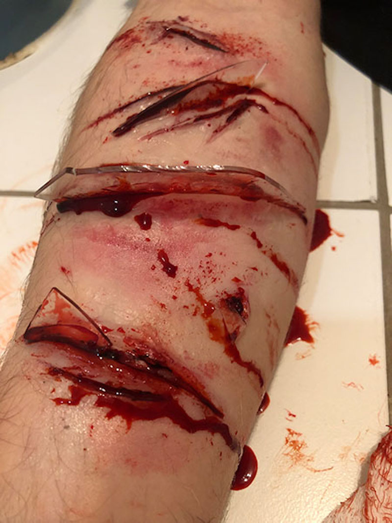 Große Schnittverletzung. Durch diverse Materialien können täuschend echte 3D-Wunddarstellungen hergestellt werden.