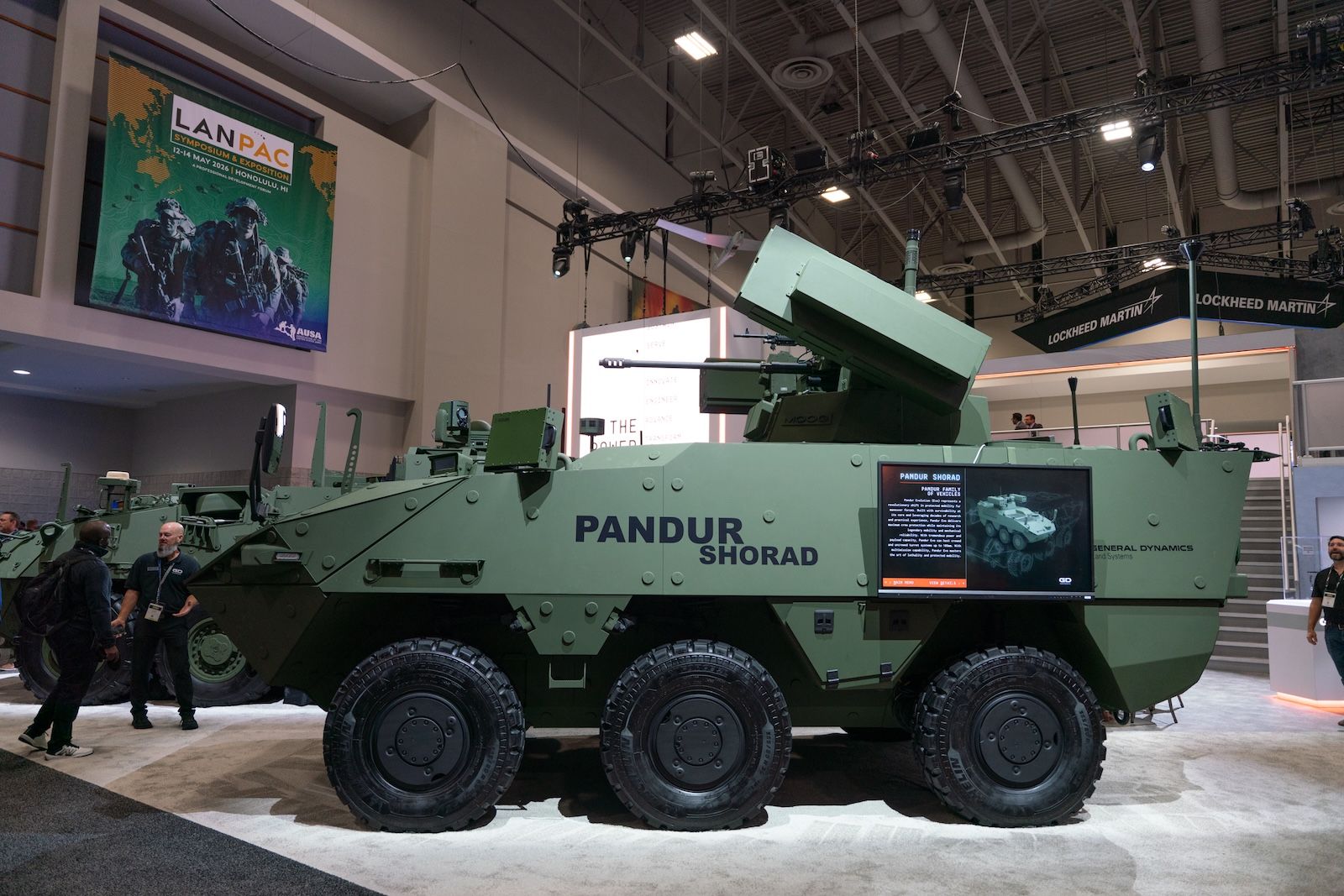 Der Pandur SHORAD, präsentiert von GDLS auf der AUSA, ist eine 6×6-Lösung für Manöver-Luftabwehr. Mit einem RIwP-Turm von Moog in einem Pandur Evo-Kampffahrzeug bietet er verbesserte Kommando- und Kontrollfunktionen sowie geschützte Mobilität und modulare Nutzlasten für Infanteriebrigaden. Weitere Informationen sind verfügbar.