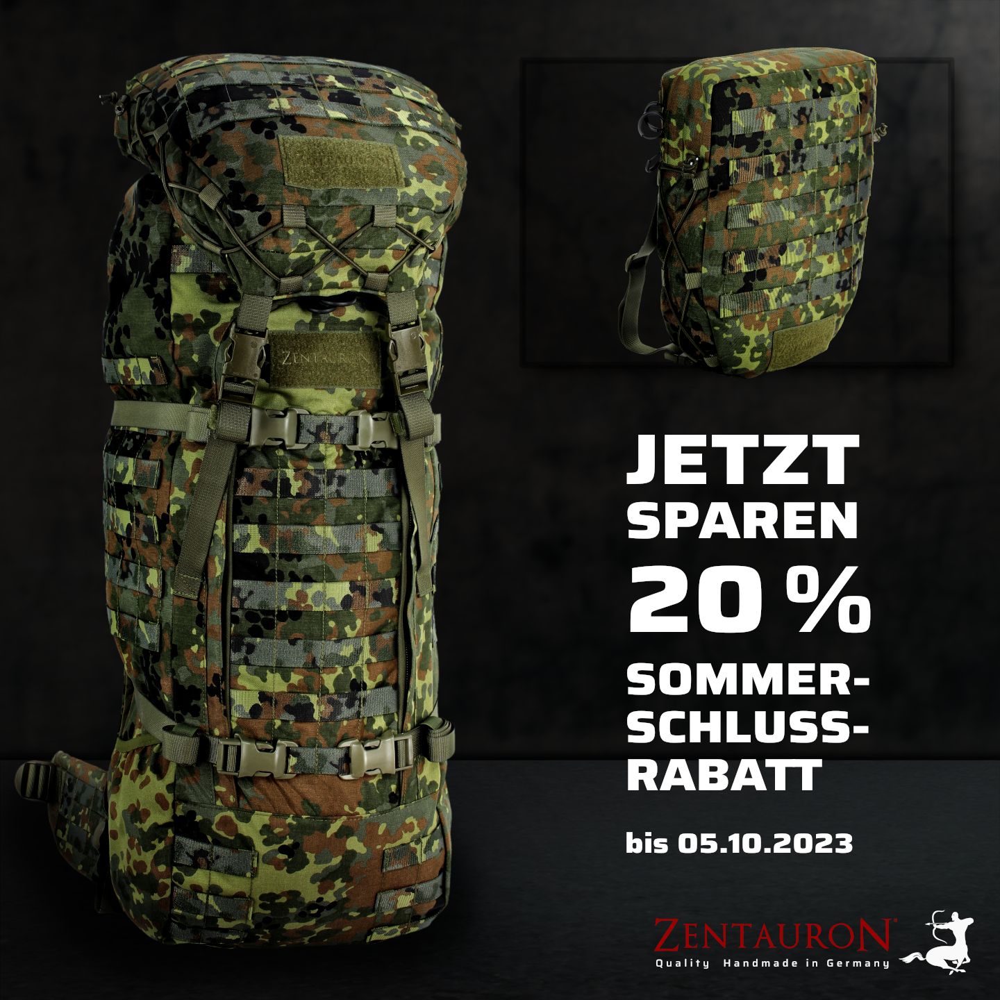 Der Sommer ist heiß: ZENTAURON bietet euch den Sommerschluss mit 20 Prozent Sommerrabatt auf alle Produkte im ZENTAURON SHOP. SCHNÄPPCHENALARM! Zu dem Preis gibt es den großen Sentinel Rucksack nie mehr.