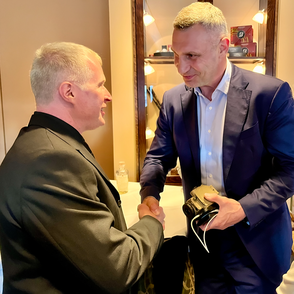 The ANDRES INDUSTRIES AG has funded the donation of 100 of their TigIR (pronounced Tiger) thermal imaging attachment devices to Ukraine last year. As part of a fundraising dinner for the Prosthetic Center Berlin-Kyiv, the 101st device was personally handed over to the Mayor of Kyiv and former boxing champion Vitali Klitschko. The company had launched its own fundraising campaign for this purpose.