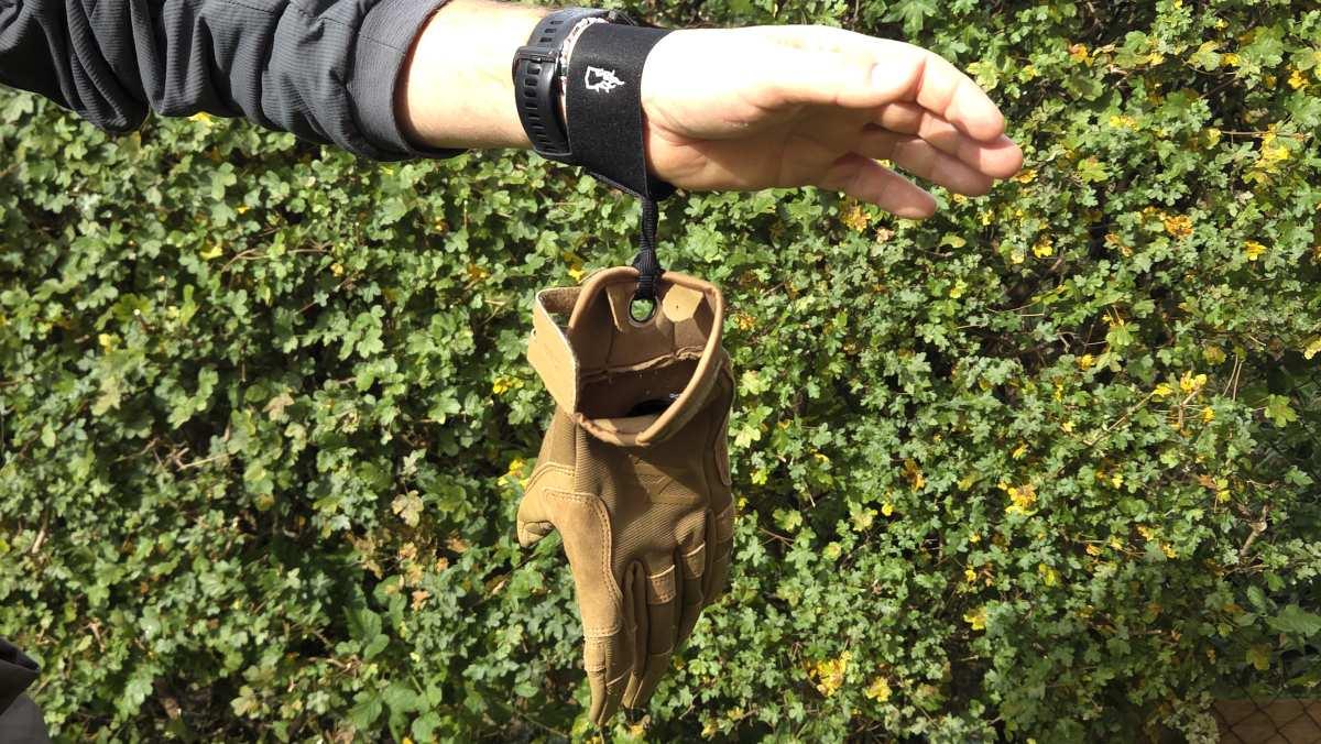 The glove also features eyelets that allow it to be easily attached to carabiners or loops.