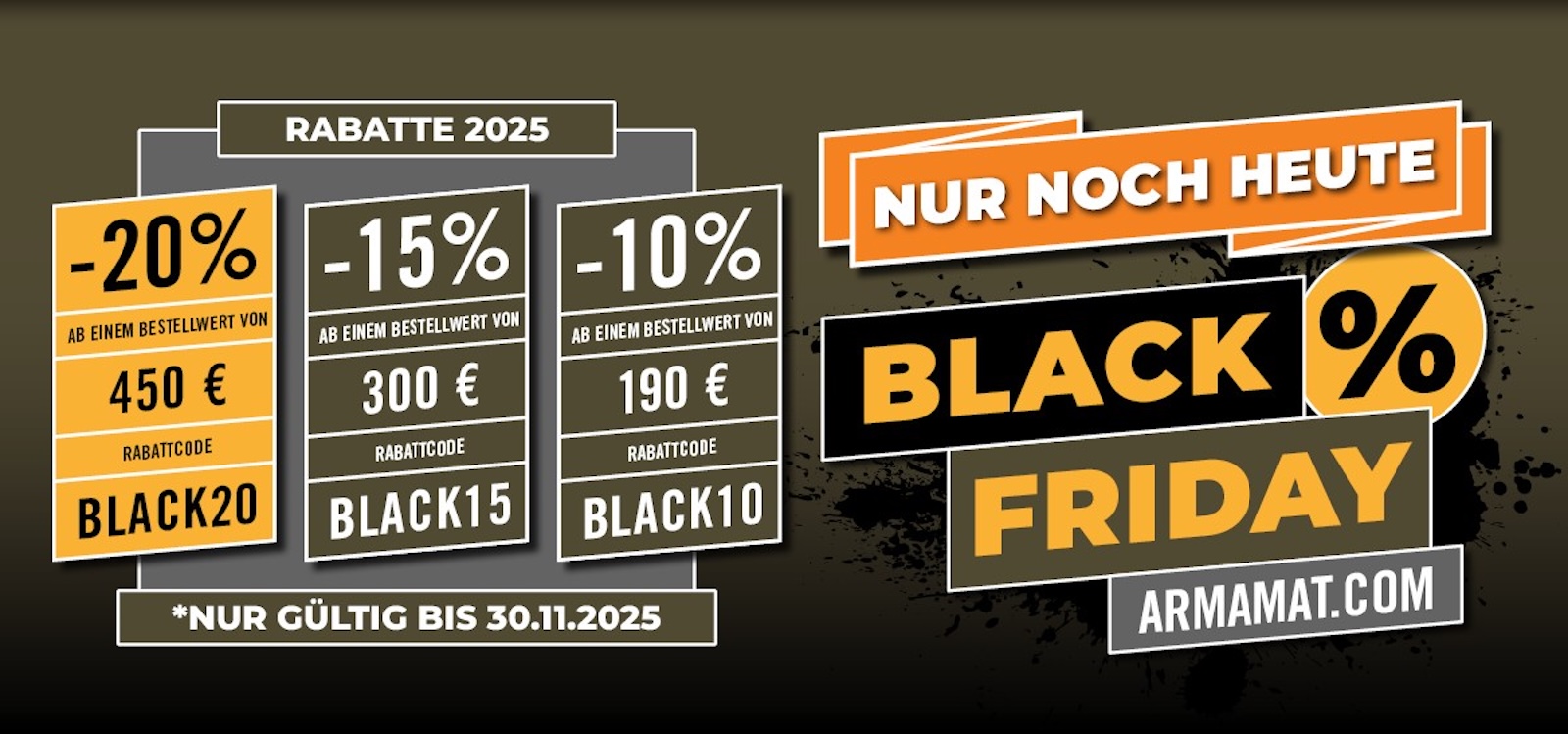 ARMAMAT is kicking off Black Week with a bang, currently offering up to 20% off its entire range. If you've had your eye on certain equipment, clothing, accessories, or weapon attachments for a while, now is the perfect time to grab a bargain. With many items from well-known brands and renowned manufacturers also reduced, it's worth taking a closer look at the store.