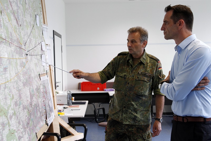 A central element of the exercise was the establishment and operation of a Bundeswehr support cell of the county or district liaison command, which tracked the situation on situation maps in shifts and assisted in the application of requests for assistance. Special attention was given to ensuring smooth communication and efficient information exchange.