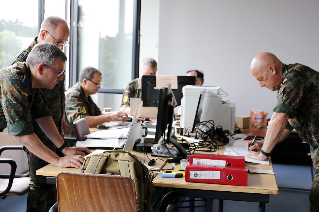From June 17 to 21, 2024, an exercise involving around 100 soldiers from the district and county liaison commands of the State Command Baden-Württemberg took place at the Karlsruhe Kirchfeldkaserne with the scenario of supporting a possible deployment of NATO forces to the designated areas on the eastern flank of the alliance and providing assistance during natural disasters. The so-called staff exercise aimed to train the cooperation between the Bundeswehr and civilian administrative staffs that would be activated in a crisis situation at the district and government district levels. The county liaison commands of Böblingen, Esslingen, Ludwigsburg, Rems-Murr-Kreis, Stuttgart, and the district liaison command of Stuttgart were on-site for the first half of the week for two and a half days. In the second half of the week, the county liaison commands of Göppingen, Heidenheim, Hohenlohekreis, Main-Tauber-Kreis, and Schwäbisch-Hall were exercised.