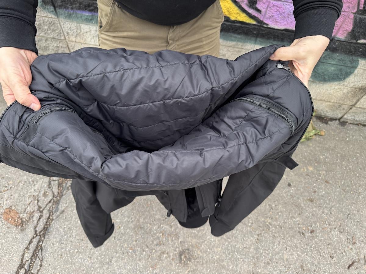 Preparing to put it on. A look inside the CARINTHIA Tactical Anorak: looks a bit like a sleeping bag, and is just as cozy, since the anorak is well insulated. G-LOFT® is the magic ingredient from the house in Carinthia that makes everything wonderfully warm, from sleeping bags to cold gear. It's built with 60g on the body and 40g on the arms, both together providing a comfortable wearing experience below zero degrees. The anorak is a winter pullover vest that also extends into the cold days of fall and spring.