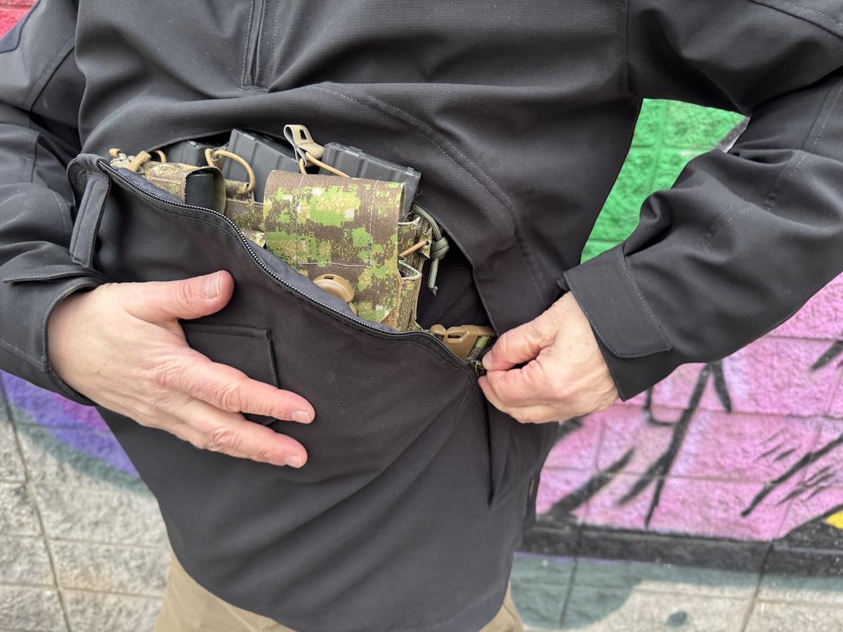 No, we're not pregnant. But the purpose of the Tactical Anorak is that the wearer can carry something concealed.