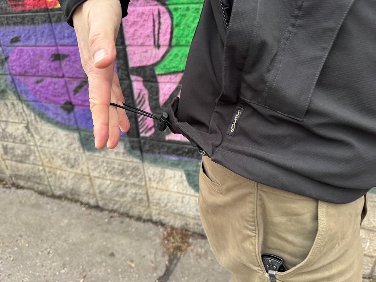 Last but not least: you can close up completely at the bottom. With the elastic cord, the bottom edge of the CARINTHIA Tactical Anorak is tightened so it doesn't draft.