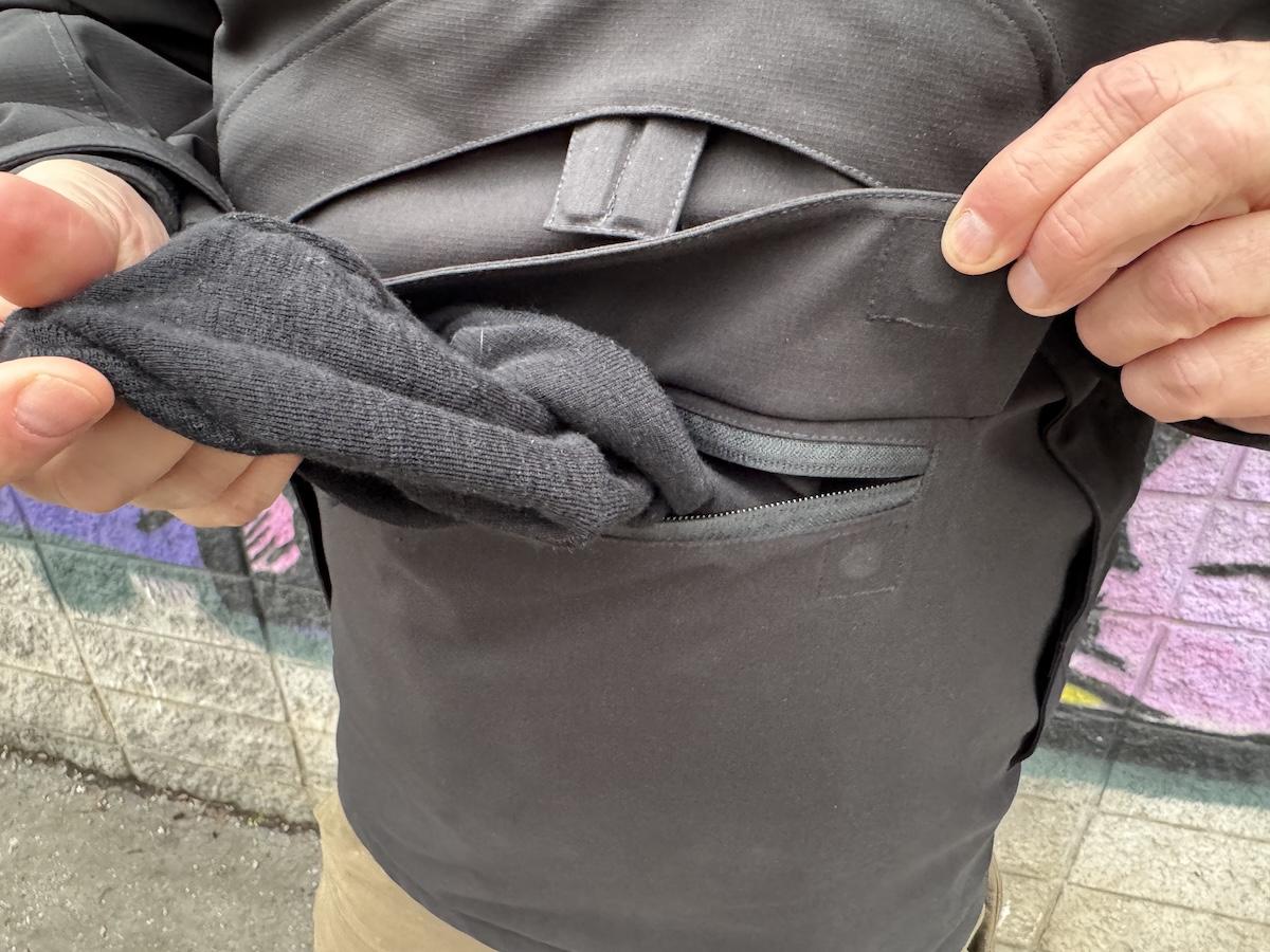By the way, we always have a cap in there because it's super practical to keep your head warm when the hood would be too much.