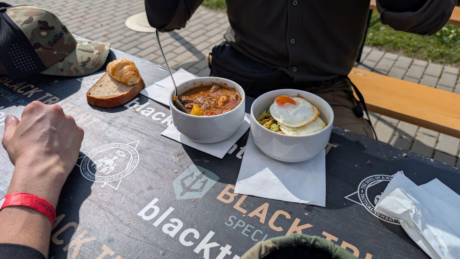 There is a delicious goulash with various side dishes. Whether you want to fortify yourself before or after the stages, there is enough for everyone. We end the rest of the day with a leisurely shower, relaxation, and equipment checks, because there is more on the agenda in the evening.