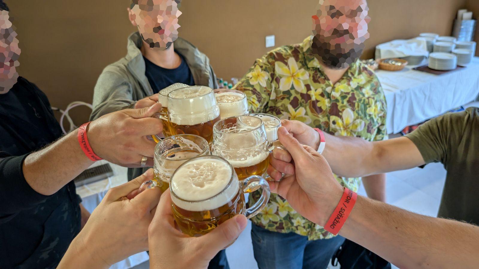 We opted for the full meal package, with extra dinner and breakfast. So we headed back to headquarters, where the catering for dinner was already being set up. In addition to various juices, there was also a beer tap, including non-alcoholic beer.