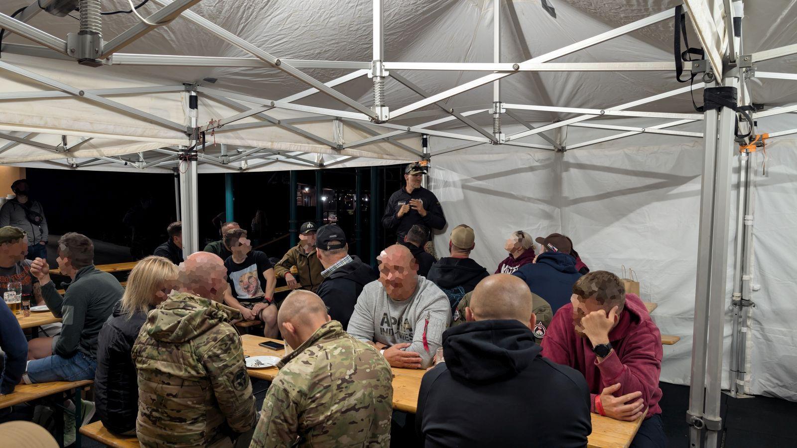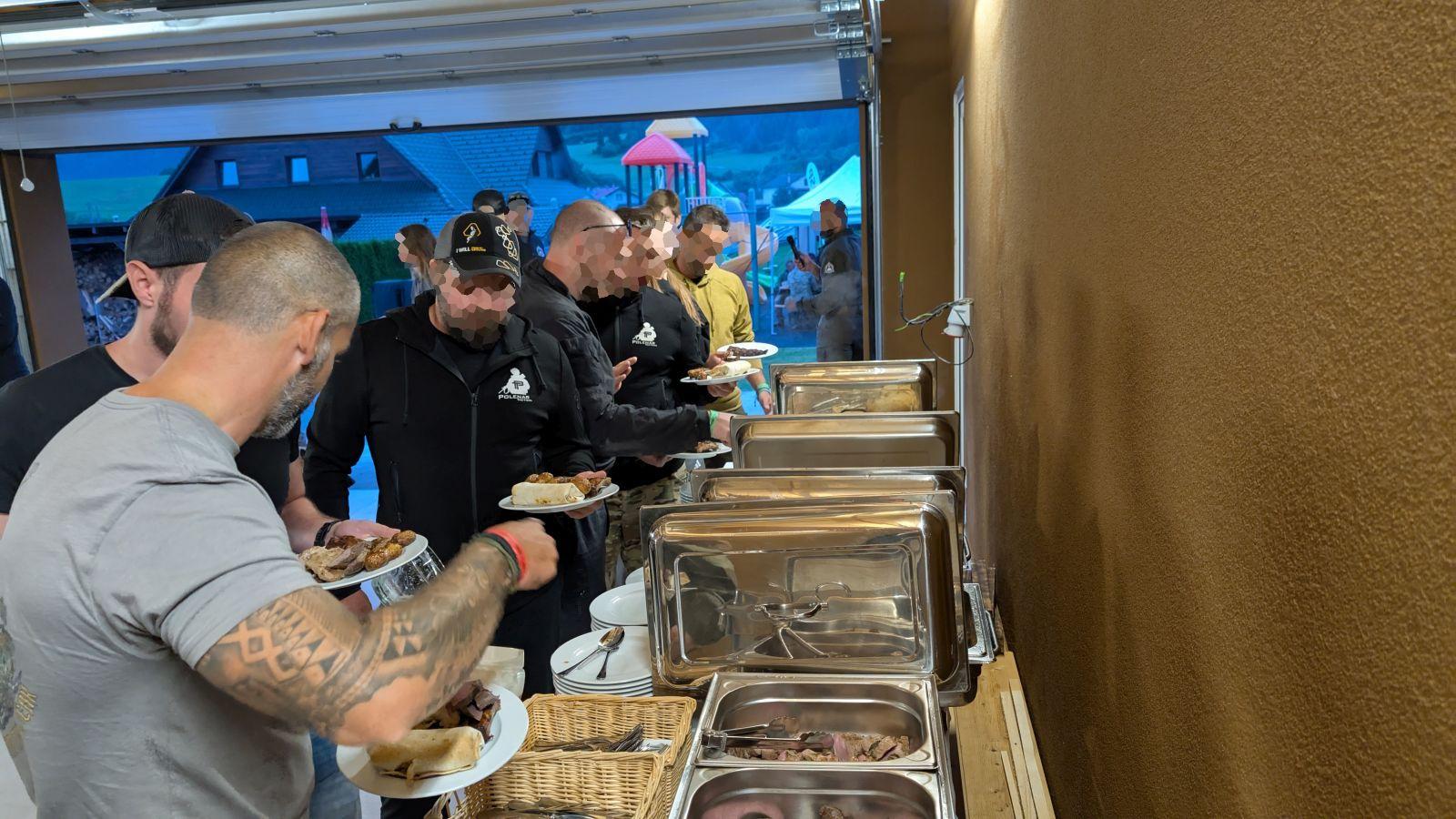 When we arrive at headquarters in the evening, the barbecue is already in full swing.
