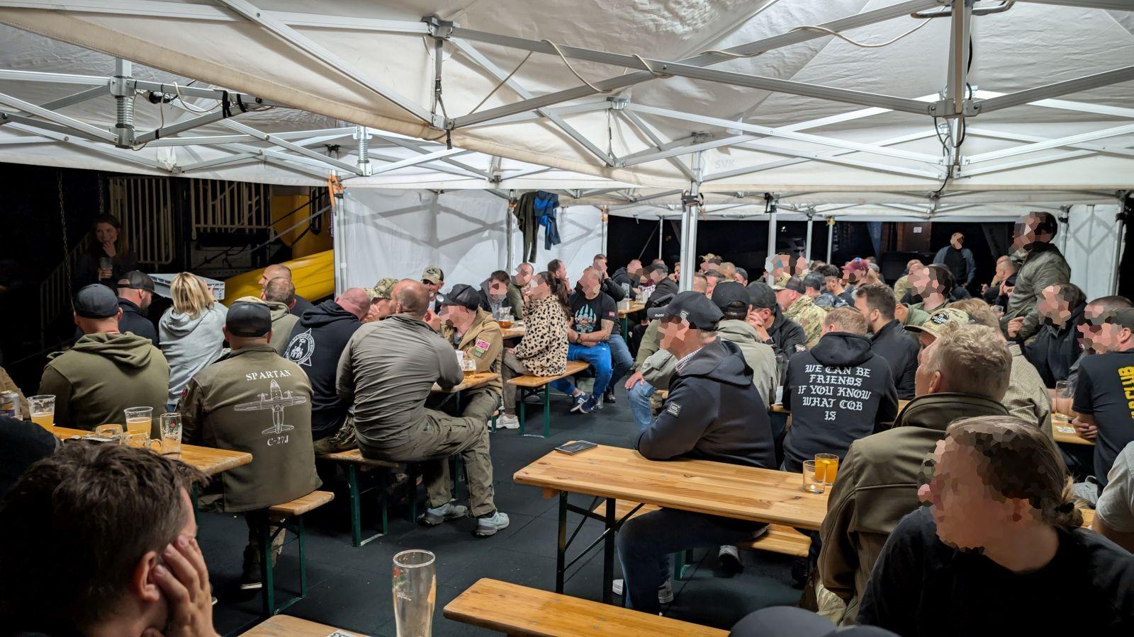 Later in the evening, the big raffle begins. Each participant received a goodie bag with raffle tickets upon registration. Additional tickets could be purchased for five euros. Most of the prizes are merchandise such as mugs, caps, and T-shirts. But equipment such as shoes from BOSP, knives, and even a Stribog weapon are also raffled off.