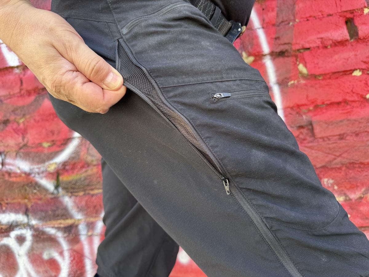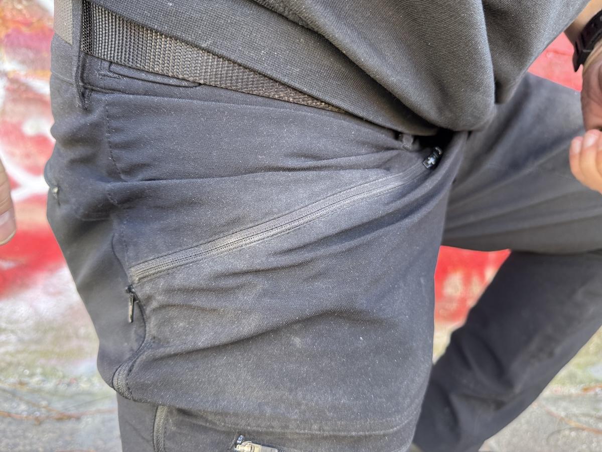 The pants look like regular pants, but they have more pockets than you would expect at first glance. This is because there are no flaps or openings. The manufacturer prefers zippers, which are cleverly used here to maintain a low profile.