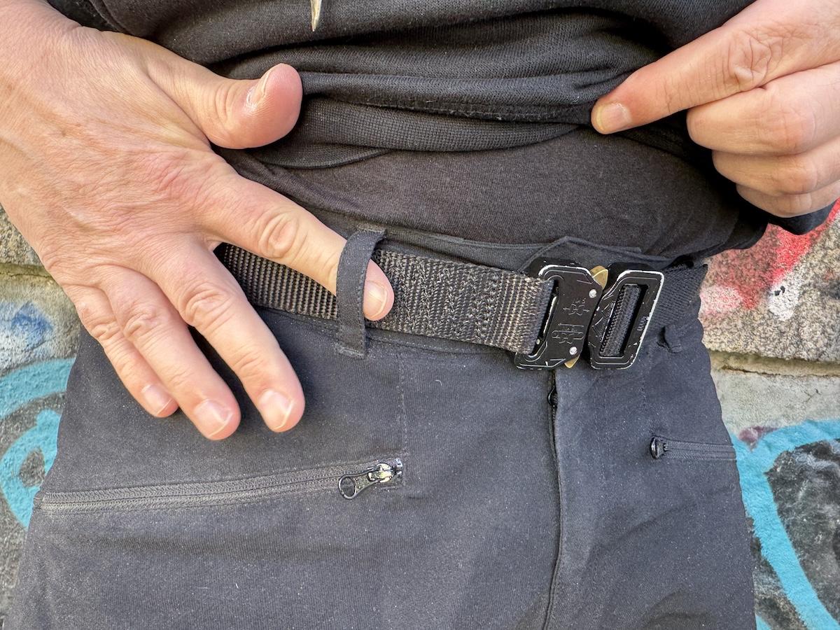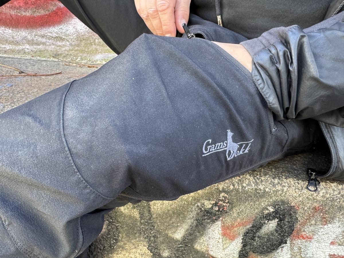 Also clever is the material used: Getzner stretch fabric with Cordura reinforcement. No natural fibers, but polyamide. The material makes the pants slightly stretchable, which is very noticeable during movement; there’s room to move, and the wearer can easily squat. Freedom of movement, even though the pants are pleasantly close-fitting.