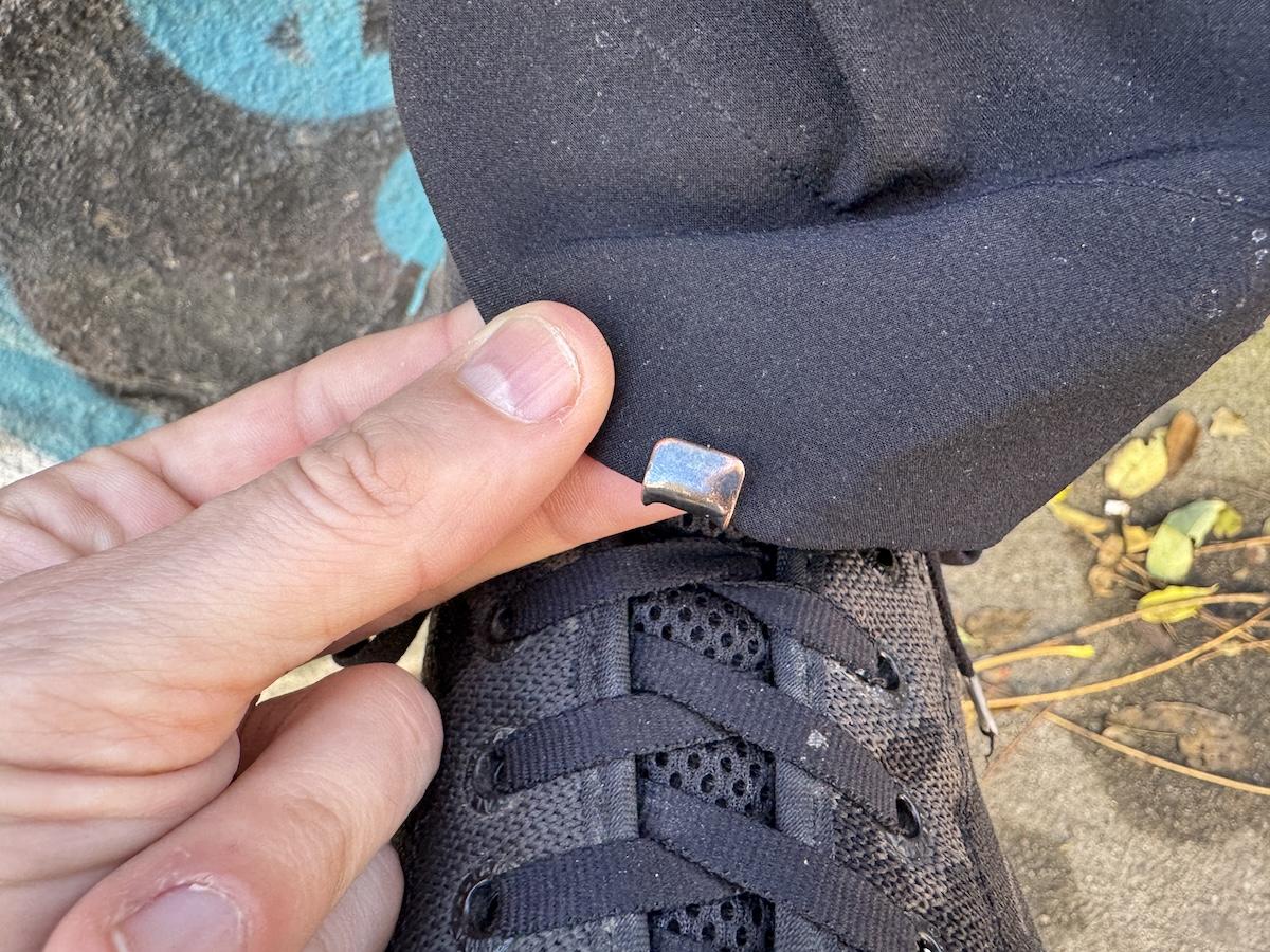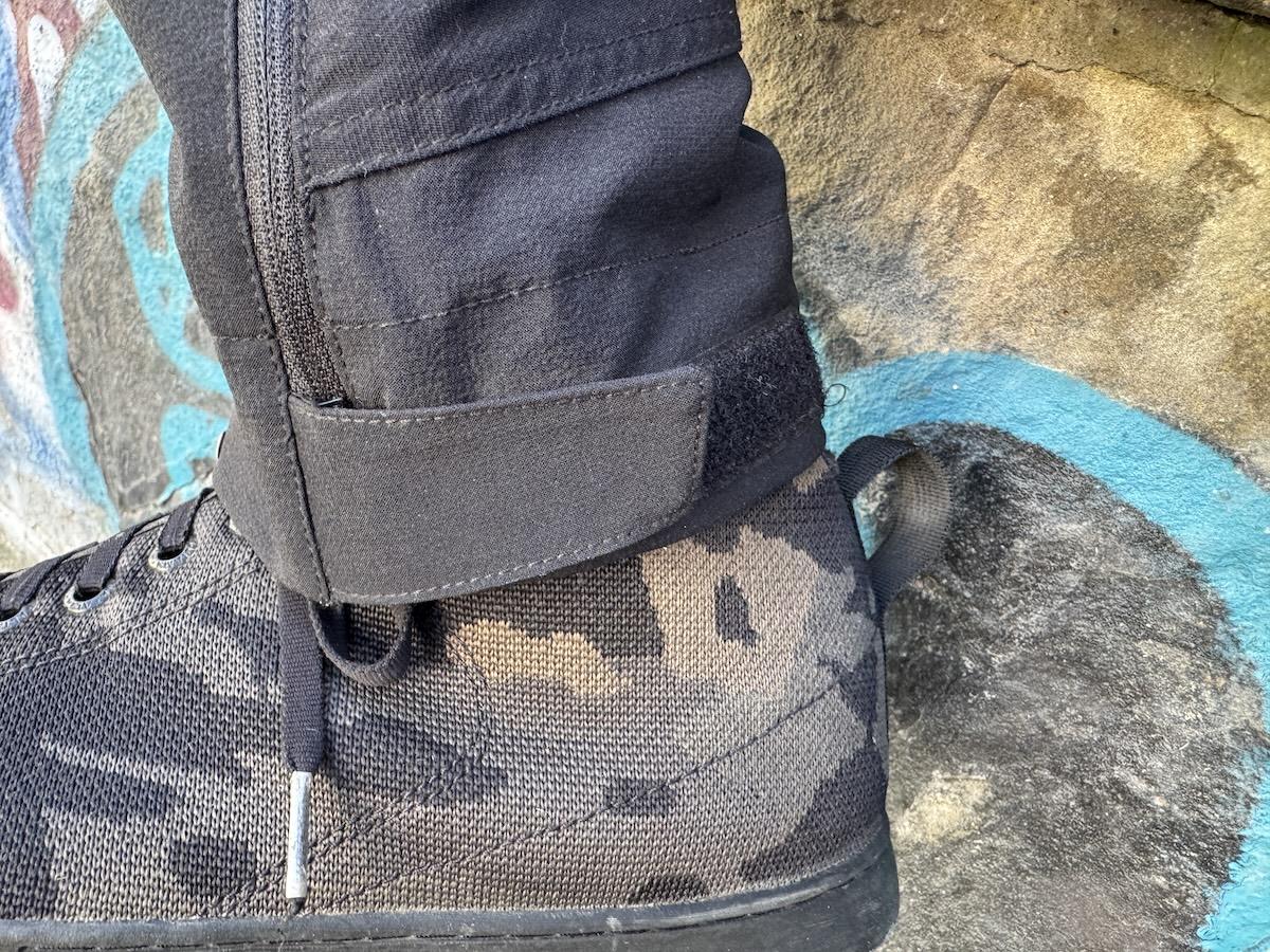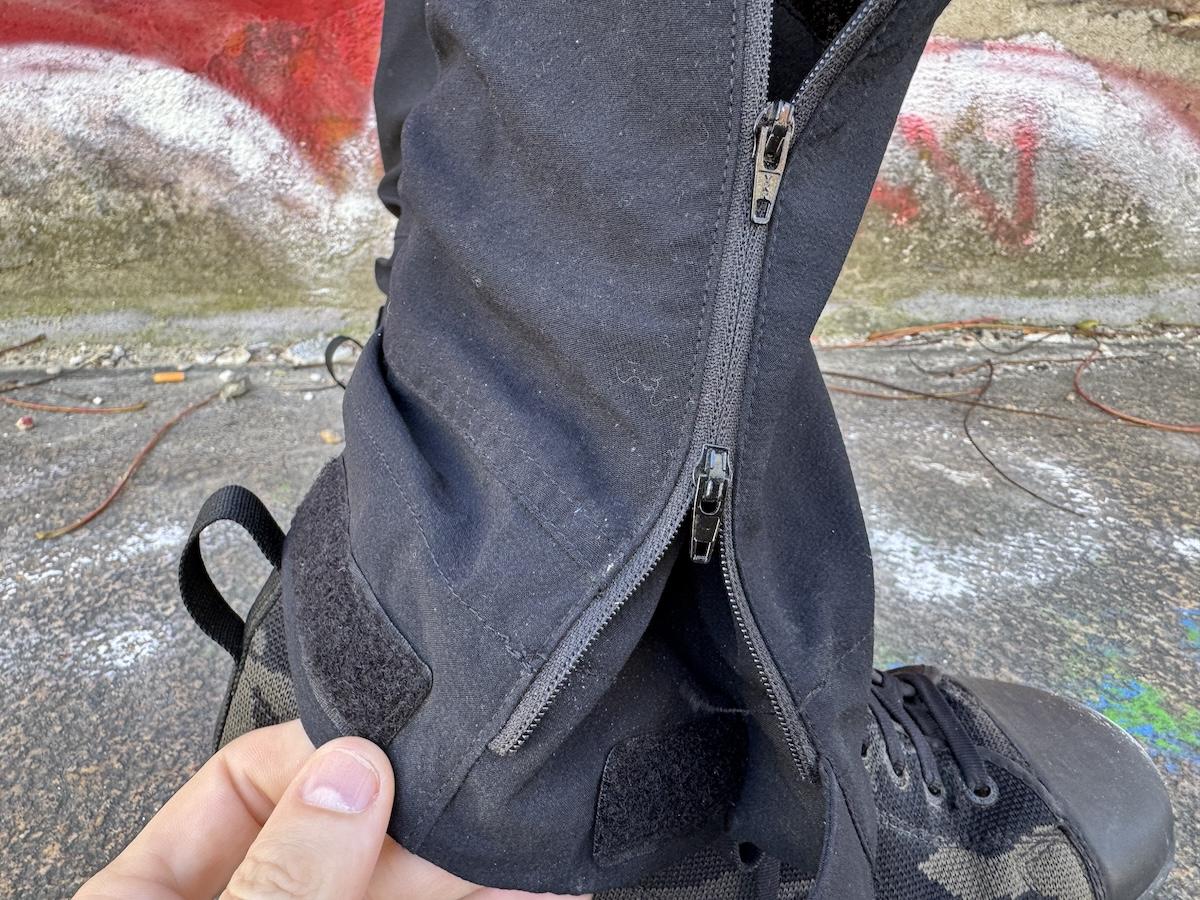 Closing it is a hook with Velcro that secures the end of the pant leg and also allows you to tighten everything up.