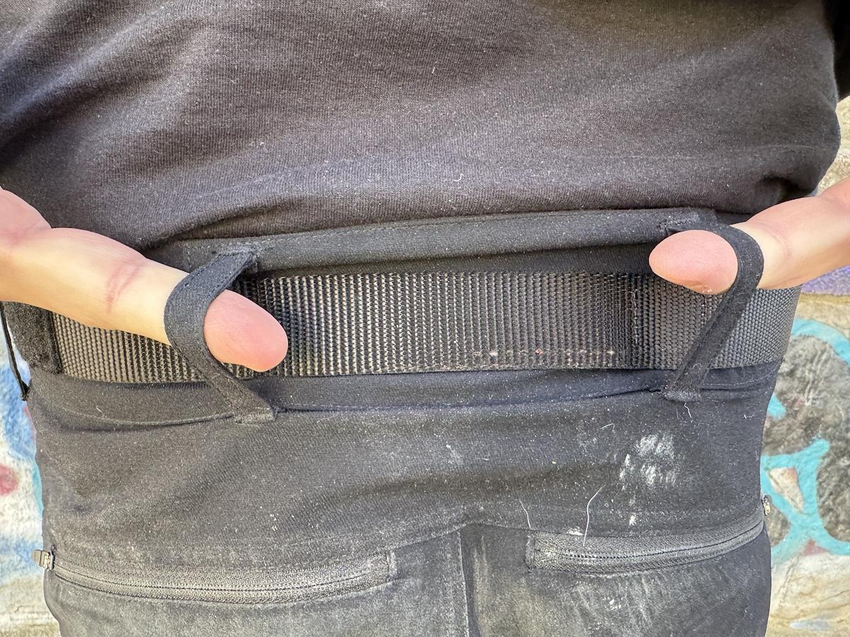 Let’s go through it from the top: at the top are narrow belt loops. No more than 5 cm works here, which is great since it shouldn't accommodate a gear belt.