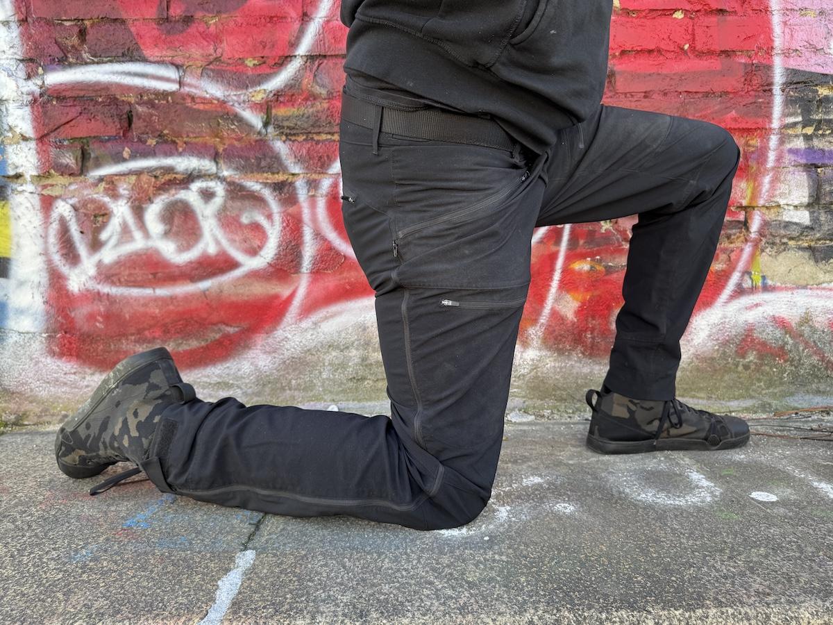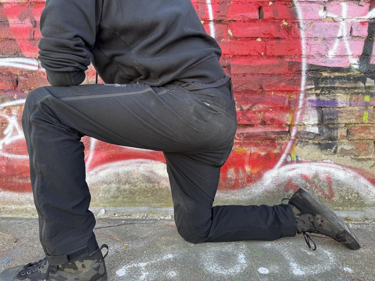 Front view: It's a black pair of pants. That's also the advantage of the Alpha XTRM; it looks normal, can be worn in everyday situations, and doesn’t appear as if you're heading out on a mission or climbing a mountain.