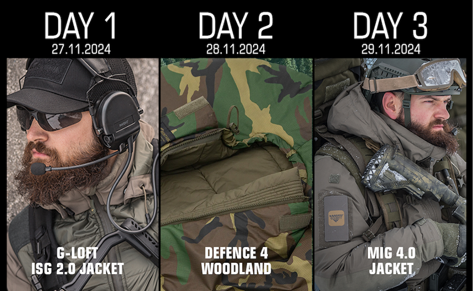 Experience the best Cold Gear from CARINTHIA, known for quality and performance. Don't miss Black Week 2024 for a 20% discount. Daily specials include Defence sleeping bags and classic MIG 4.0.
