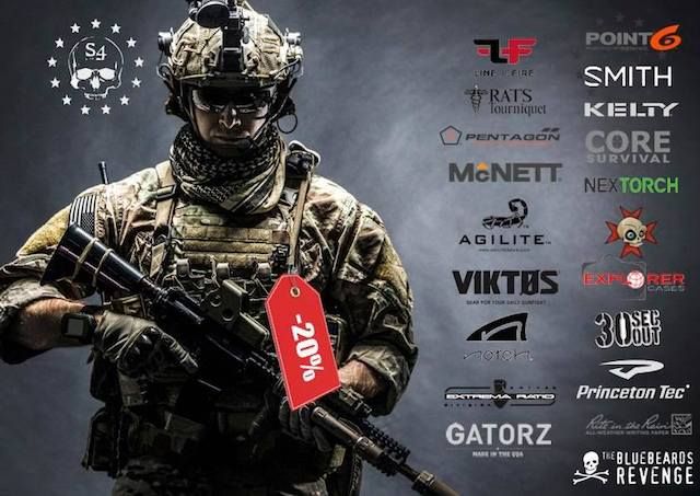 S4 SUPPLIES is offering a 20% discount for a week due to company holidays. Brands like Viktos, Gatorz, Smith's, Kelty, Tops Knives, and Core Survival are included. Visit s4supplies.com for more details.