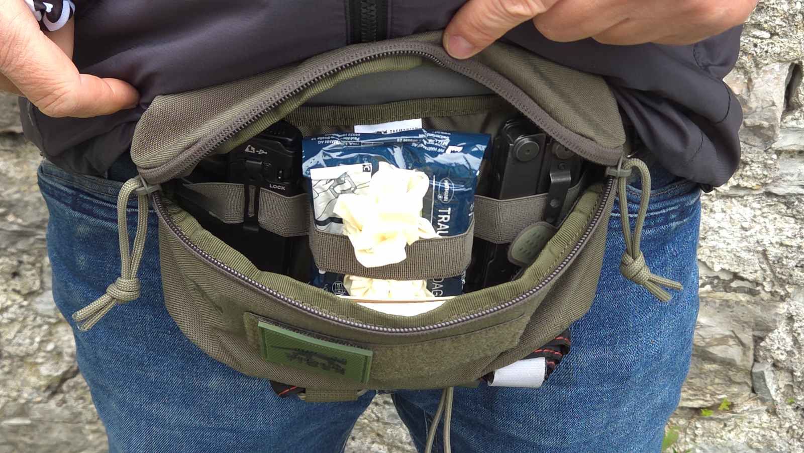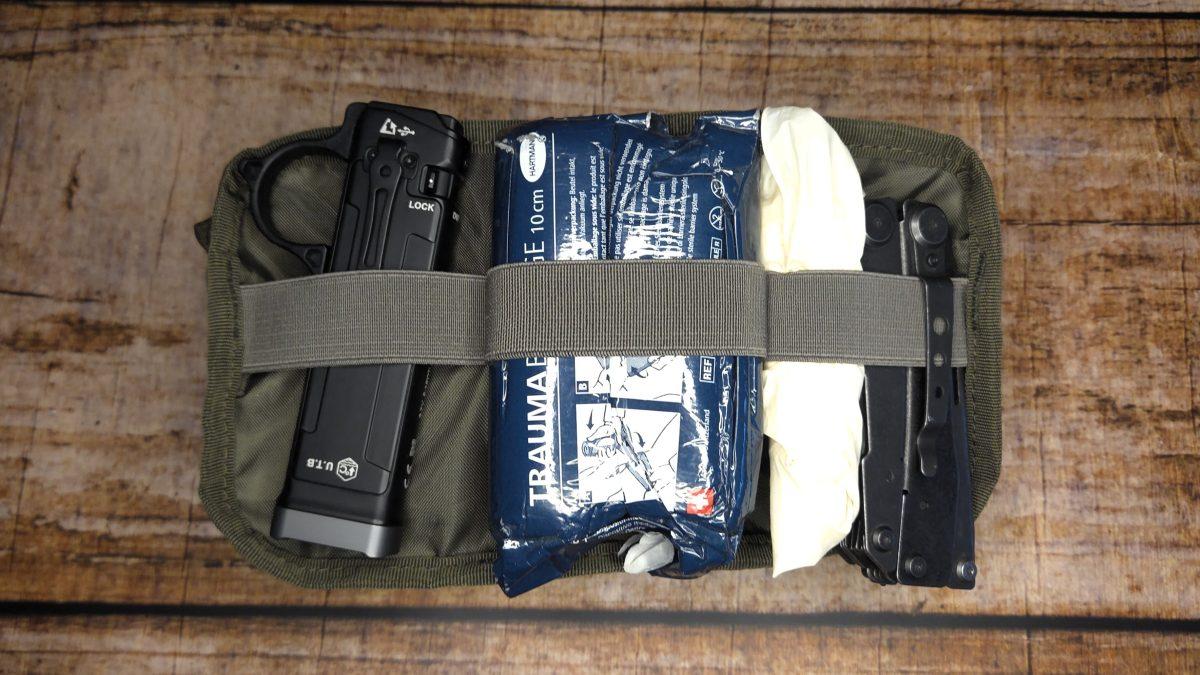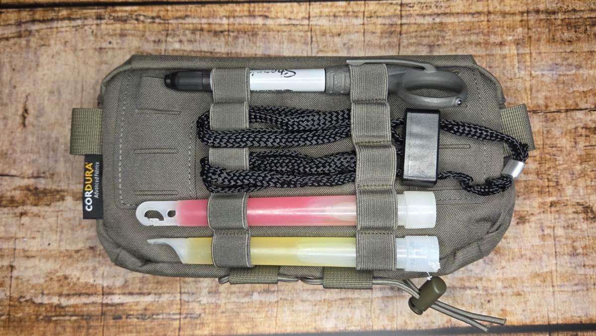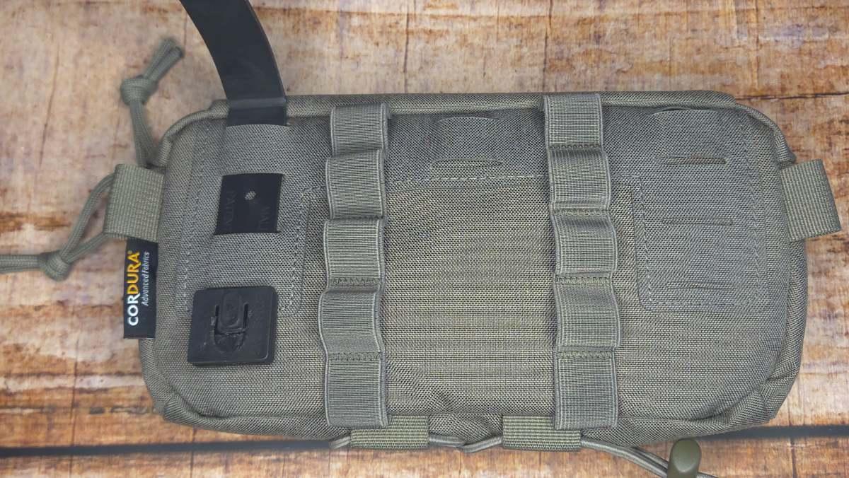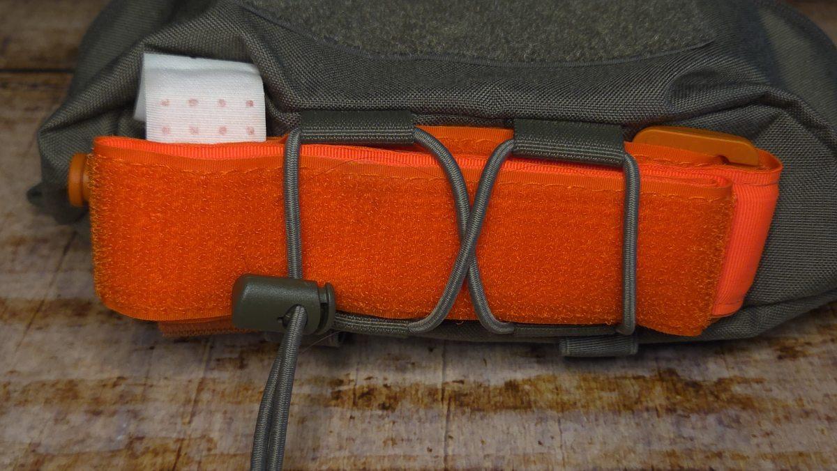 A tourniquet holder is made possible by four Cordura loops at the bottom using the included bungee cord and cord stopper.
