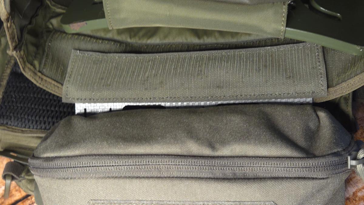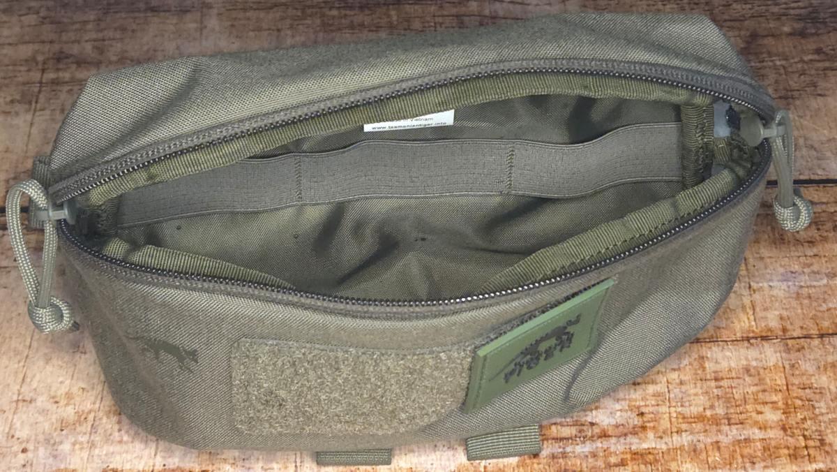 Here you can see a look inside the small and compact bag. At this point, it is clearly visible that there are three rubber loops. That is the maximum. There is no fuzzy Velcro area inside.