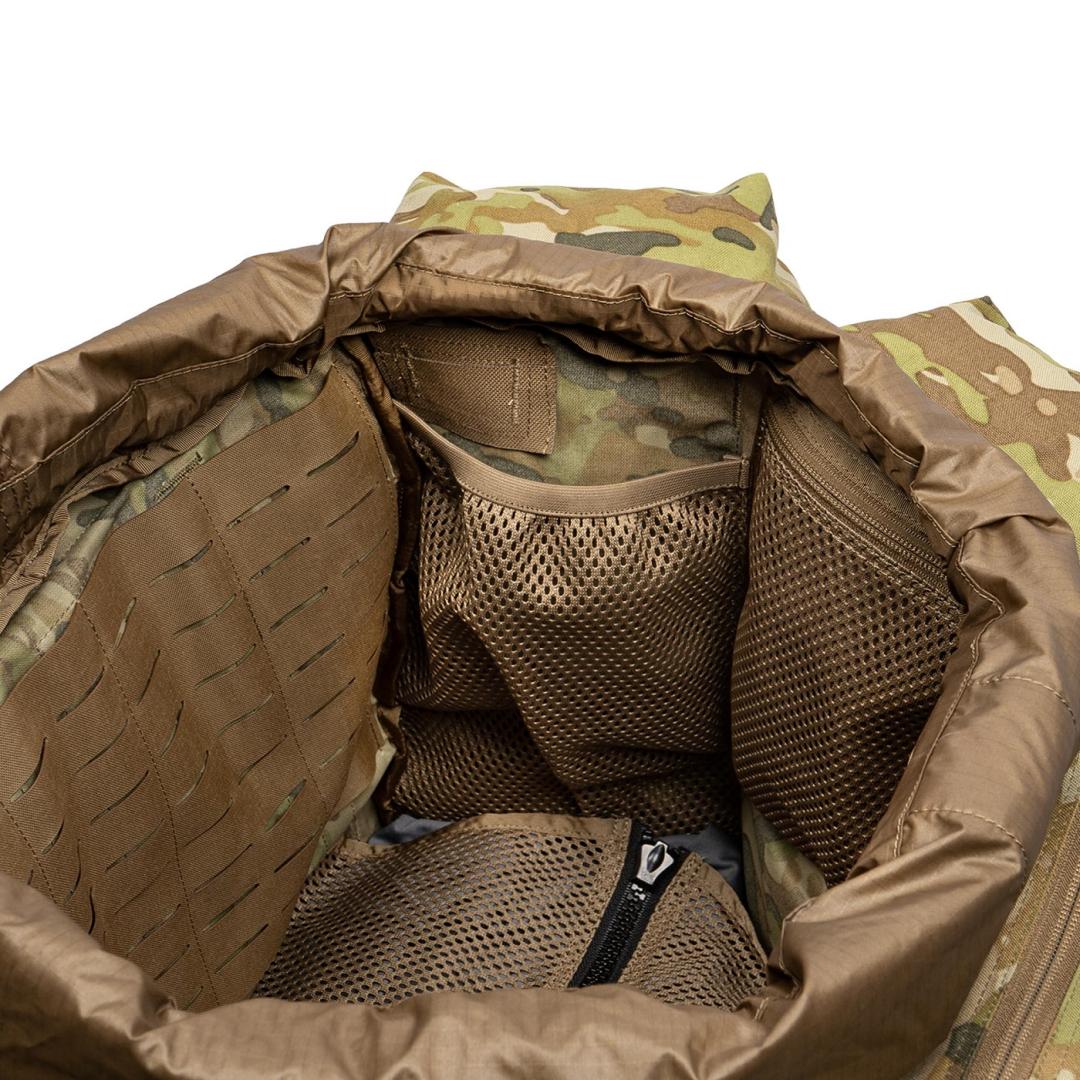 Furthermore, it improves load carriage, access, and internal organisation without adding unnecessary complexity. Weight now sits closer to your back with the addition of an internal laser-cut PALS field, allowing the included radio/cargo saddle or heavier items like an eTool to be secured tight to the frame.