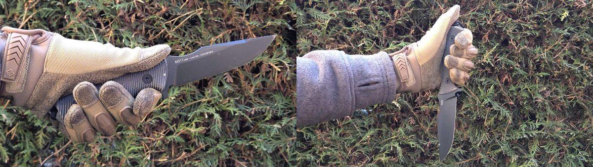 The handle feels great in the hand, whether wearing gloves or not. The knife can be used with various grip styles, such as saber, Filipino, or ice-pick grips.