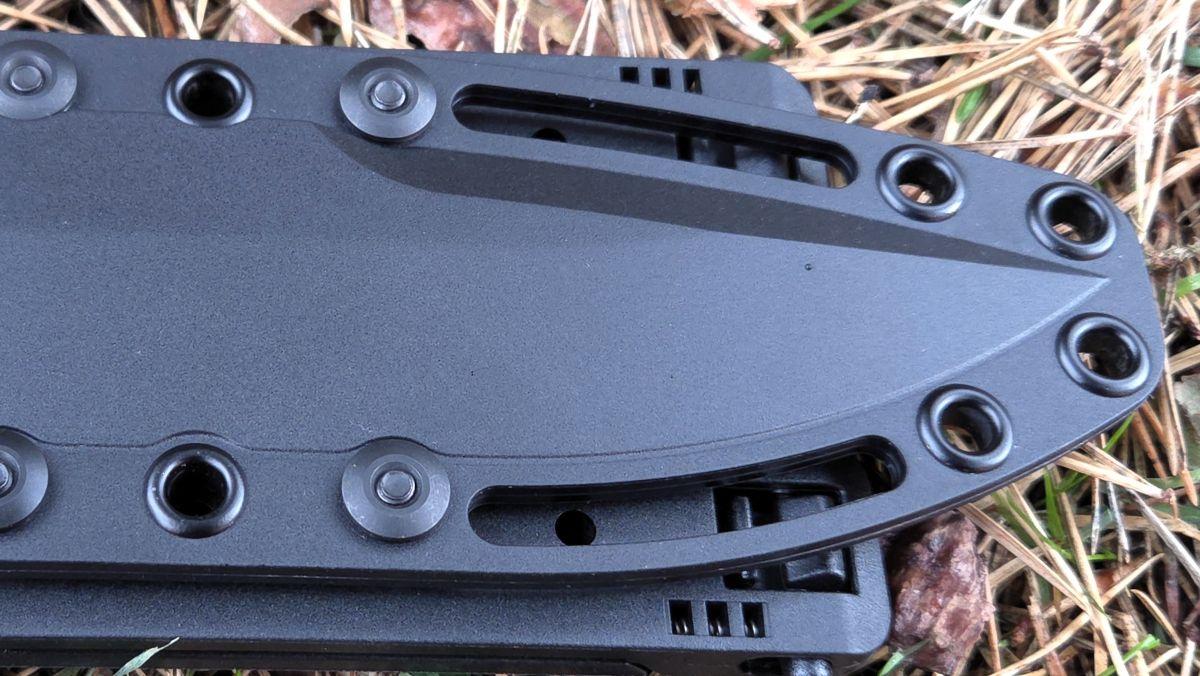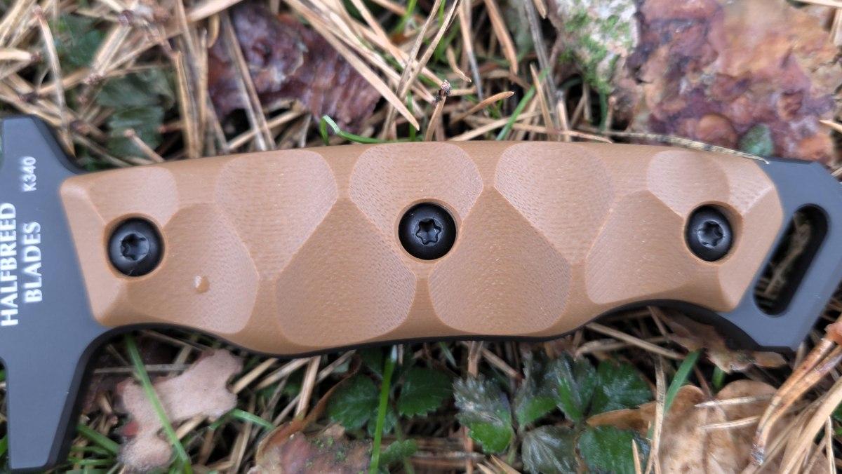 This texturing provides better grip, allowing the user to hold the knife more firmly and place their thumb on the spine of the blade. Additionally, it serves to reduce weight.