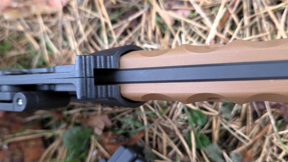 The textured thumb ramp attached to the Kydex sheath ensures a secure draw of the MIK-03P.