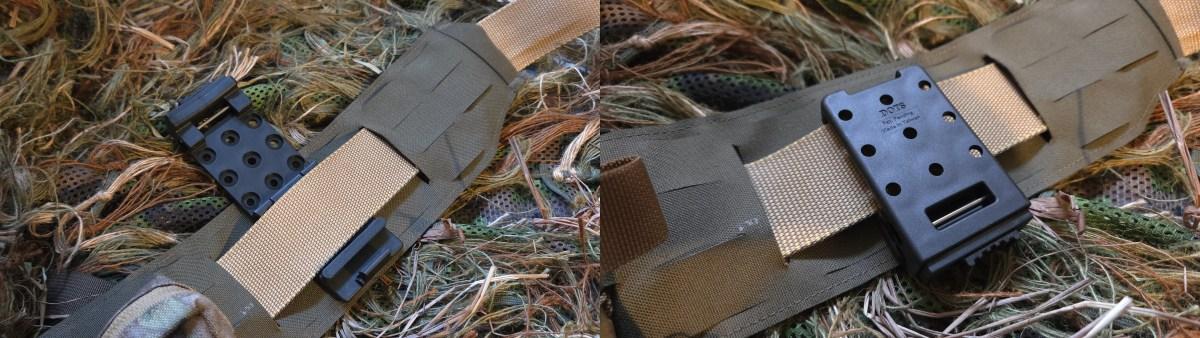 The attachment of the MIK-03P to a MOLLE/PALS compatible duty belt is done using the MOLLE clips with DOTS-MOLLE-LOK Large, allowing for easy threading onto your MOLLE/PALS loops.