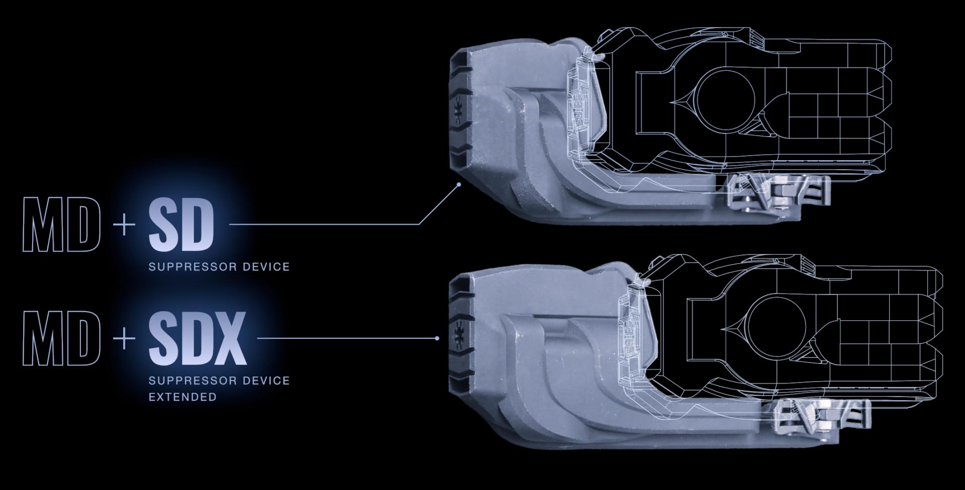 The MFMD is already a silencer, but for those who want it even quieter, an additional part can be clipped on, the SD or SDX. Even with the longer SDX combined with the MFMD, the whole thing is still shorter than classic silencers.