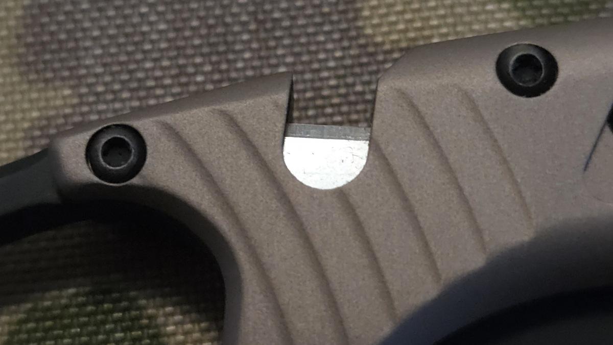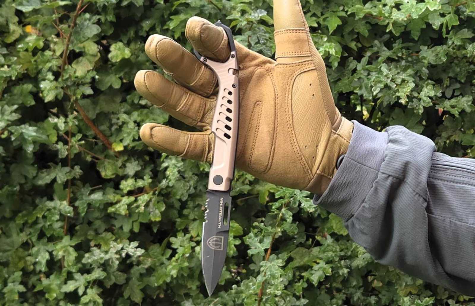 A seatbelt cutter is integrated into the handle of the MH-STEALTH.