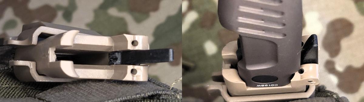 The securing of the MH-STEALTH in the sheath is released with light pressure.