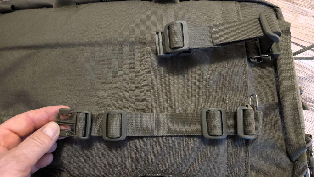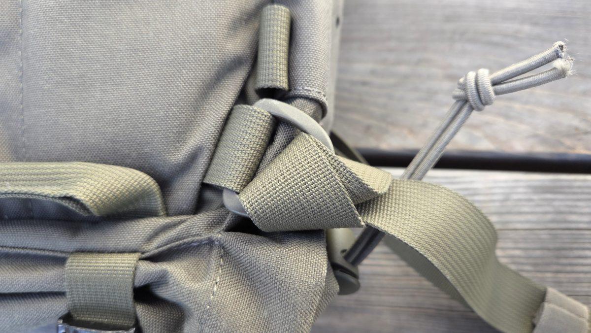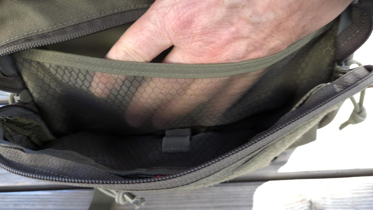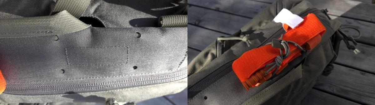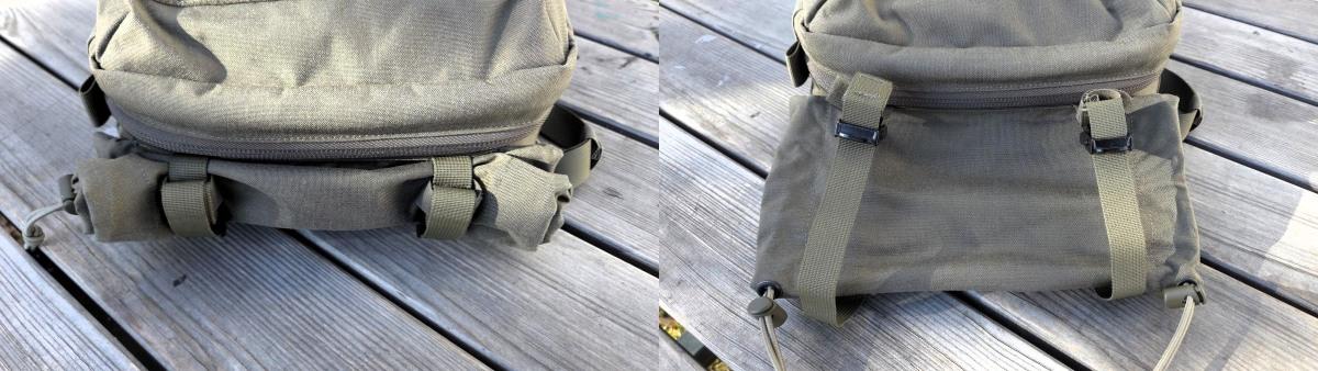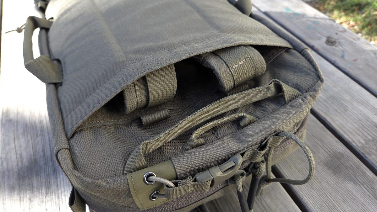 At the bottom there is a compression pouch designed for a rescue sling. According to the manufacturer, this pouch can also hold a stretcher. This section is not removable.
