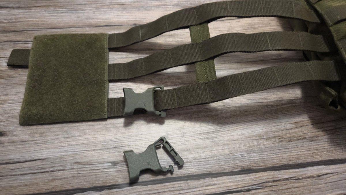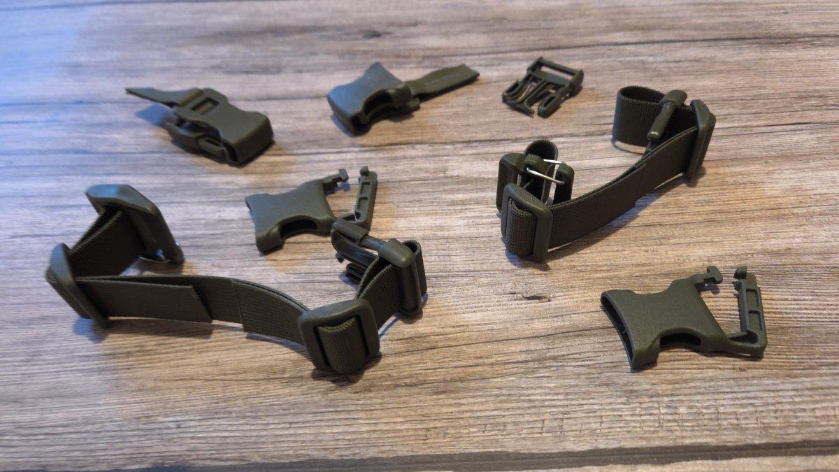 The necessary accessories are included. These are the 25 mm wide straps with snap hooks for the Modular Medic Combat Pack 18 and Fastex buckles. QASM buckles and click-in buckles for attachment to the plate carrier are also included.