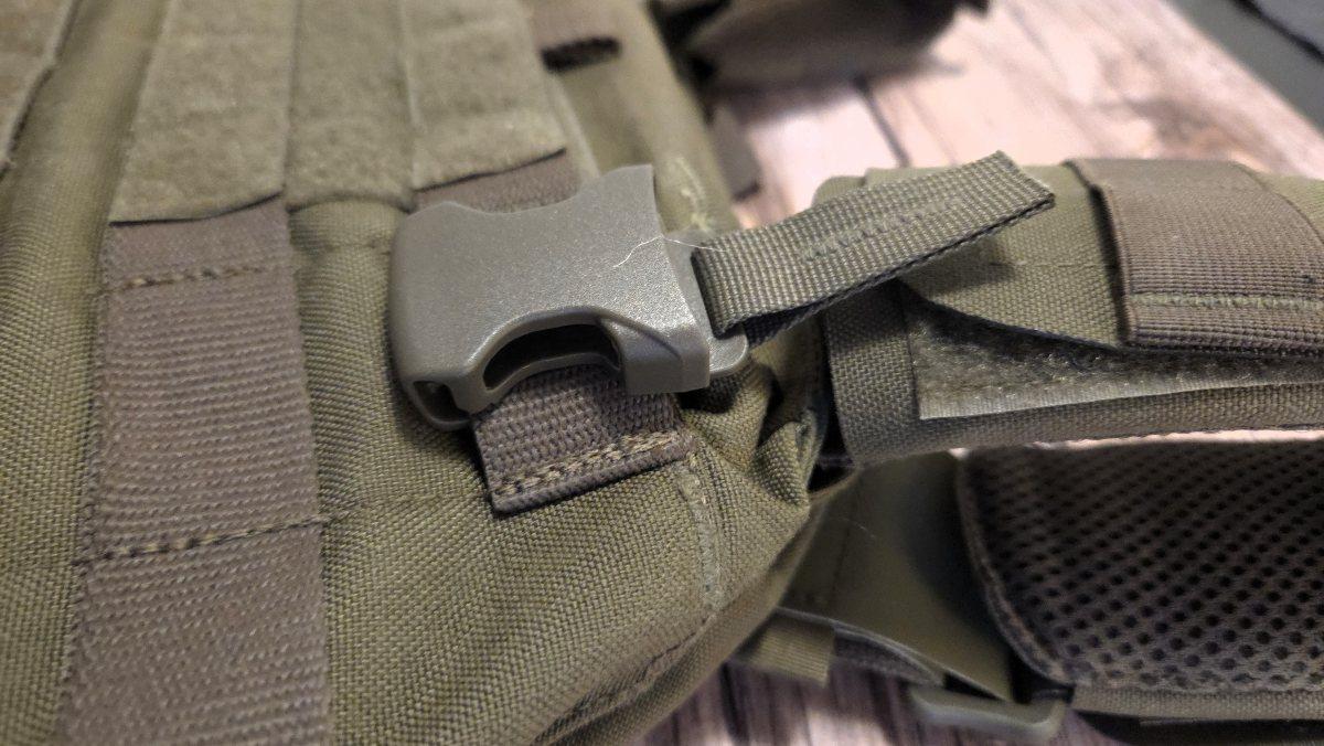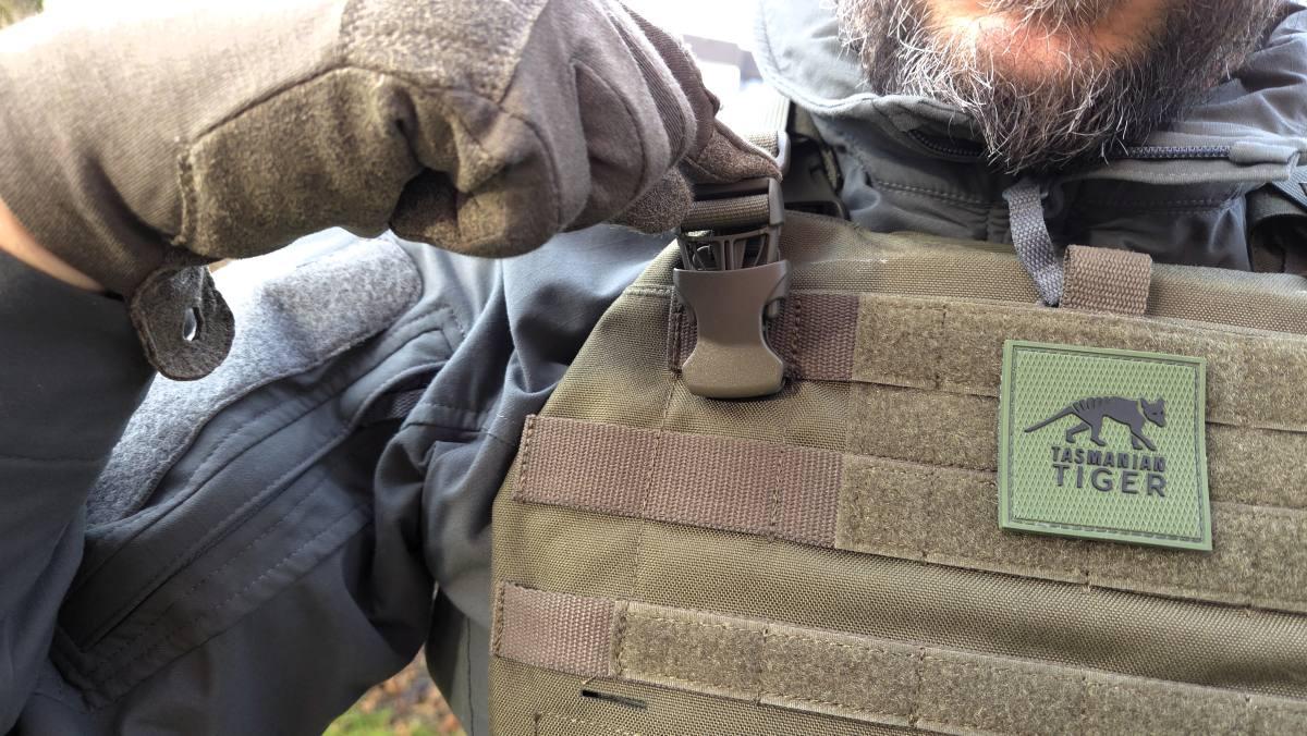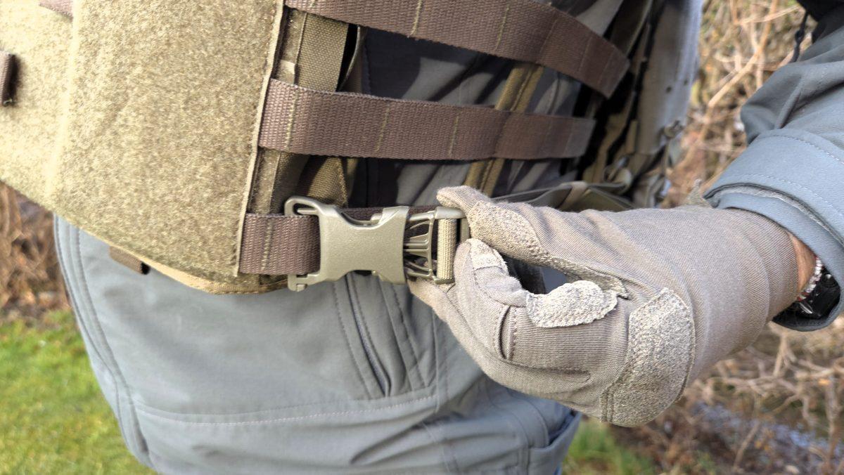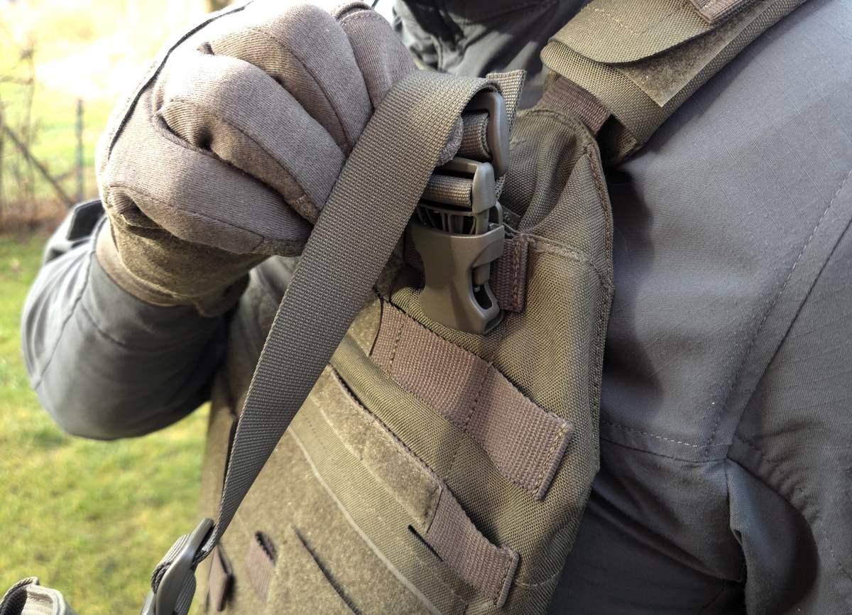 Now connect the upper webbing of the Modular Medic Combat Pack 18 to the QASM buckle on the plate carrier. Click!
