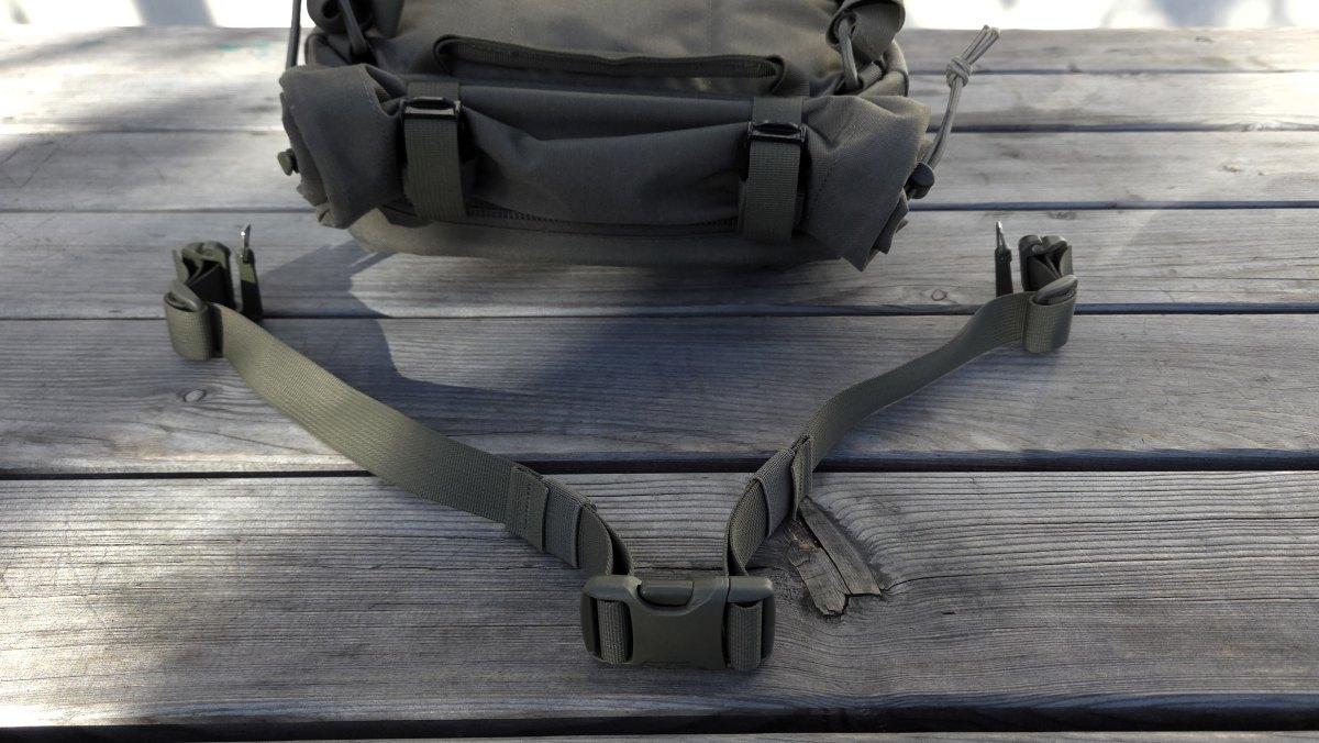 The first and easiest step: separate the lower part of the shoulder strap from the upper part, creating a part of the buckle that will be used later. Then remove the upper padded section of the shoulder strap and the hip belt.